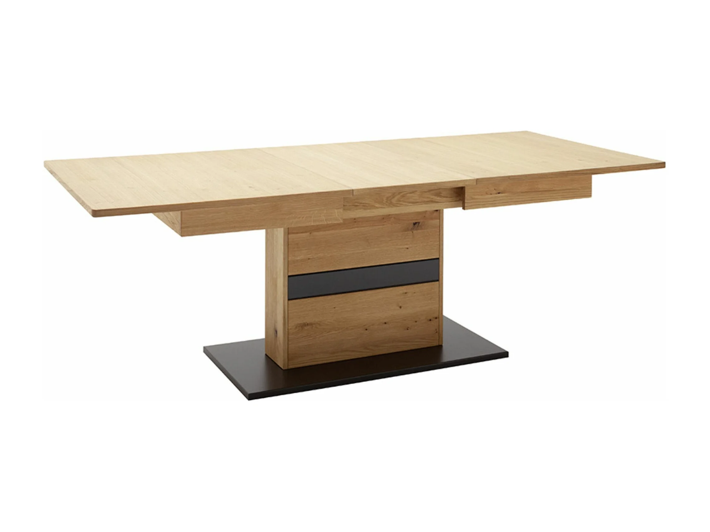 Table à manger, table de repas extensible coloris chêne sauvage, gris noir - Longueur 180-230 x Hauteur 77 x Profondeur 100 cm