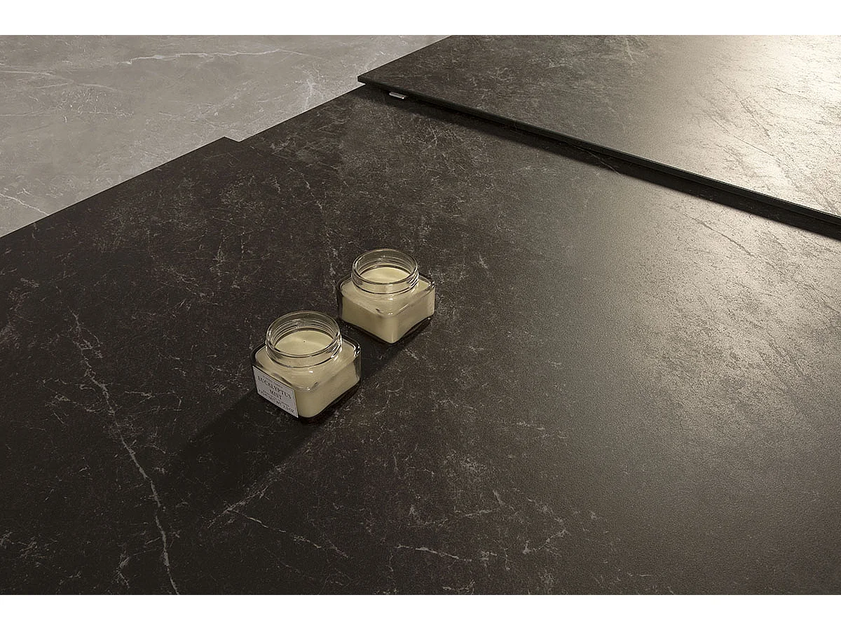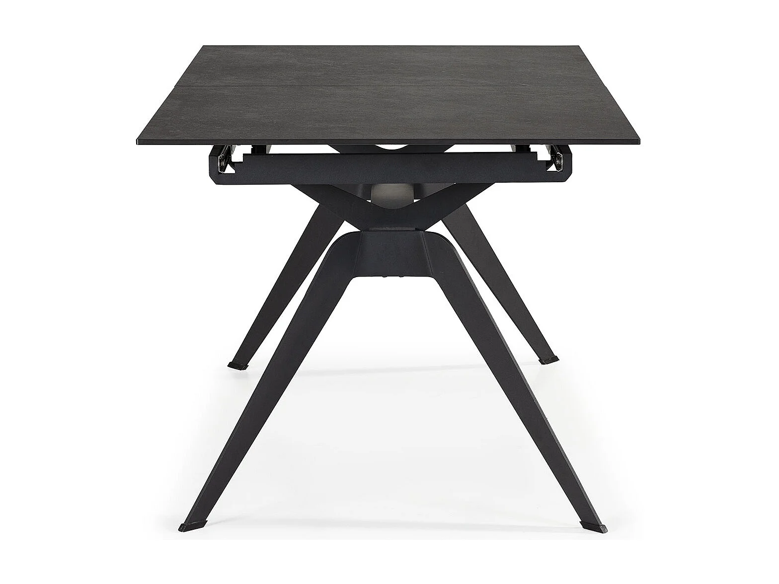 Table à manger, table de repas extensible en céramique coloris noir, pieds en métal noir - Longueur 160-220 x Profondeur 90 x Hauteur 76 cm