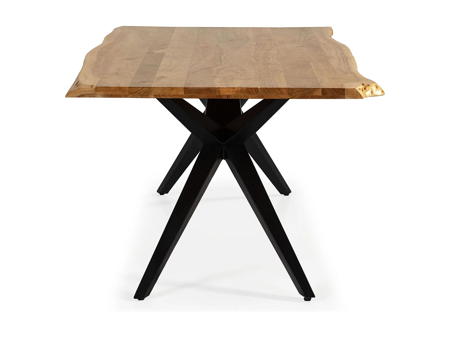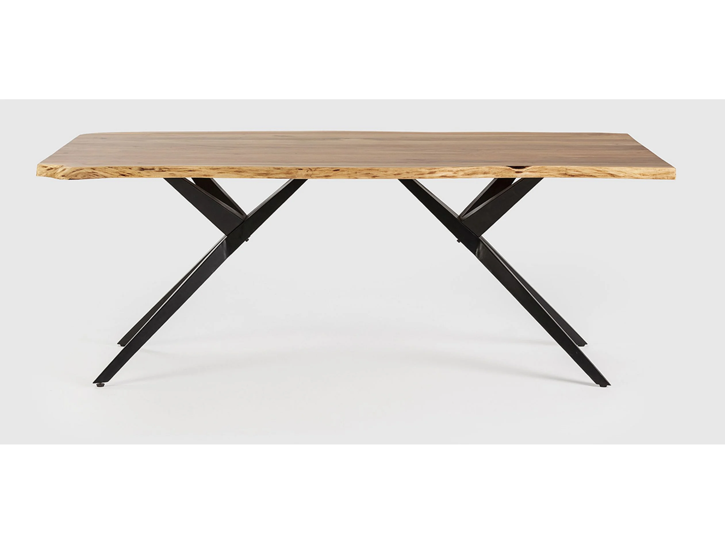 Table à manger, table de repas rectangulaire en acacia coloris naturel, pieds en métal noir - Longueur 200 x Profondeur 100 x Hauteur 76 cm