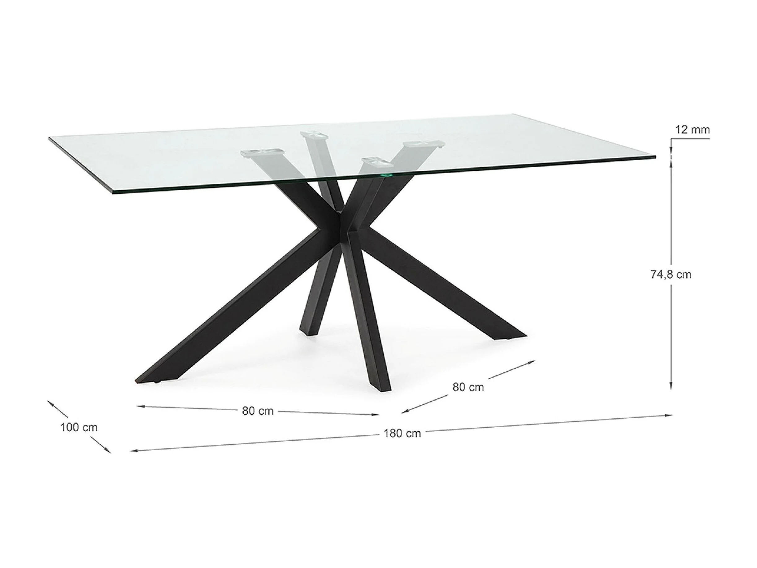 Table à manger, table de repas rectangulaire en verre et pieds en métal coloris noir - Longueur 180 x Profondeur 100 x Hauteur 76 cm