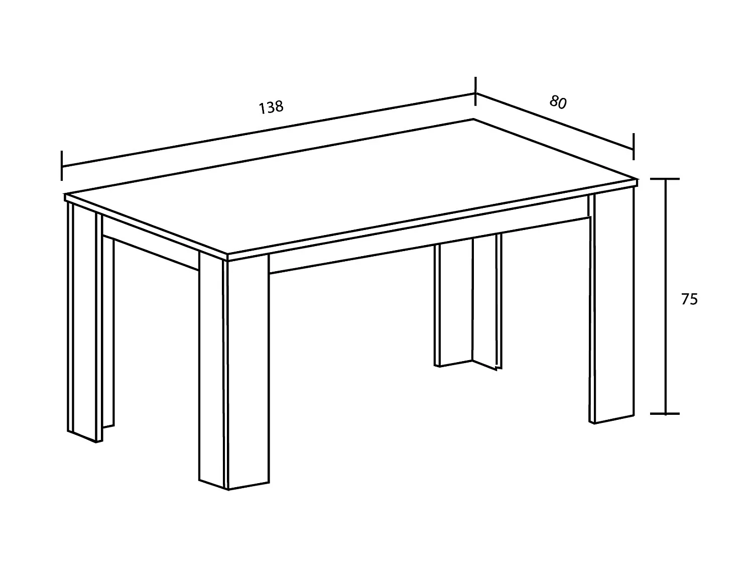 Table à manger, table de salon rectangulaire coloris chêne cambrian - Longueur 138 x Profondeur 80 x Hauteur 75 cm