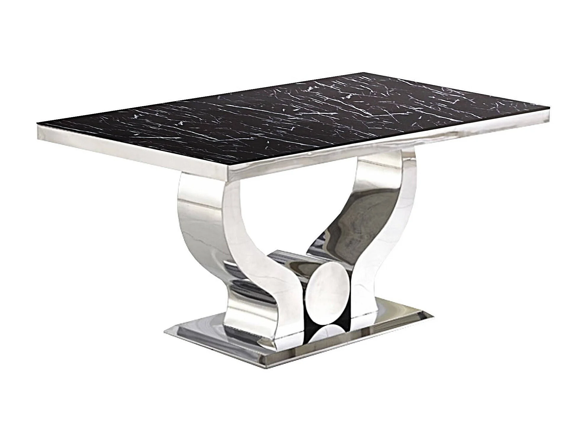 Table à manger TROFY 4 à 6 personnes 150x90 cm chrome plateau en verre effet marbré noir