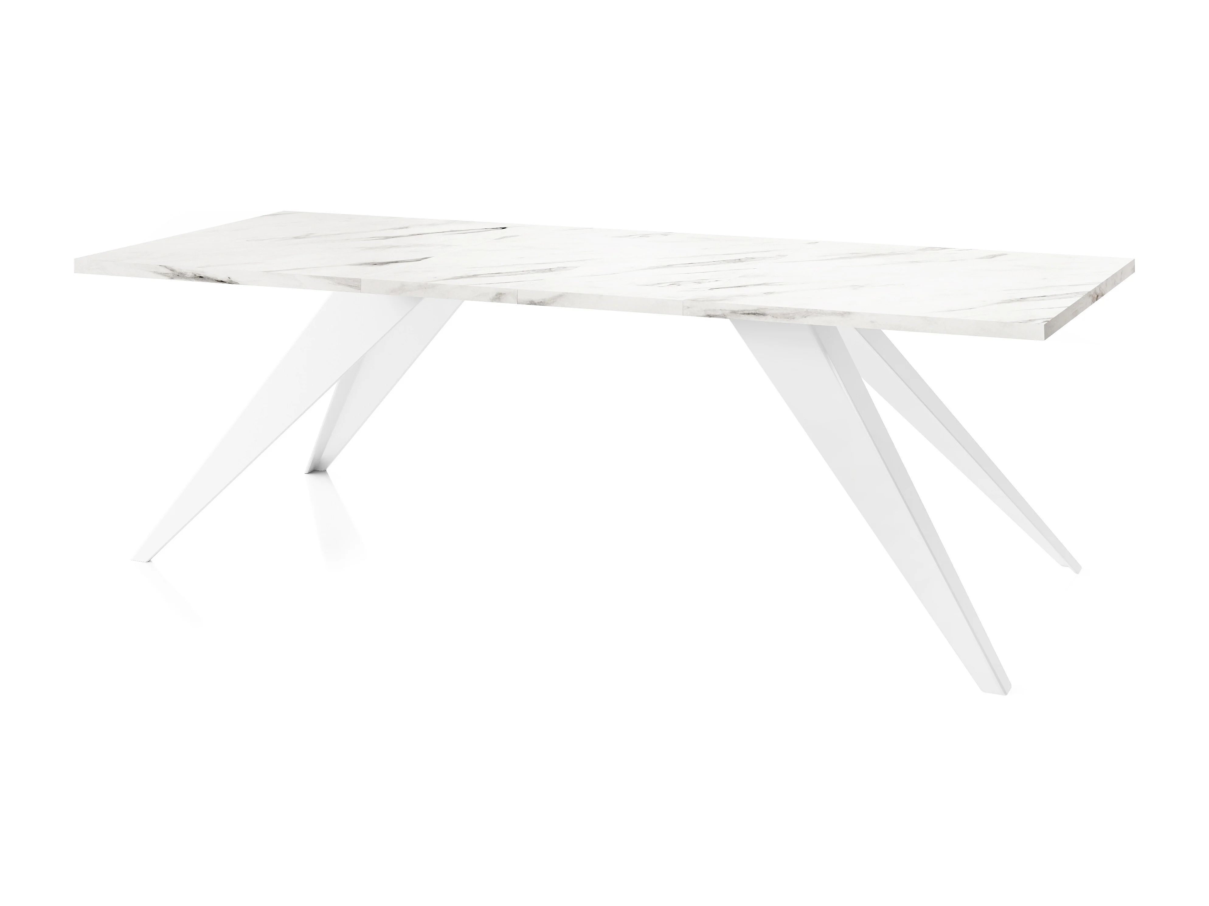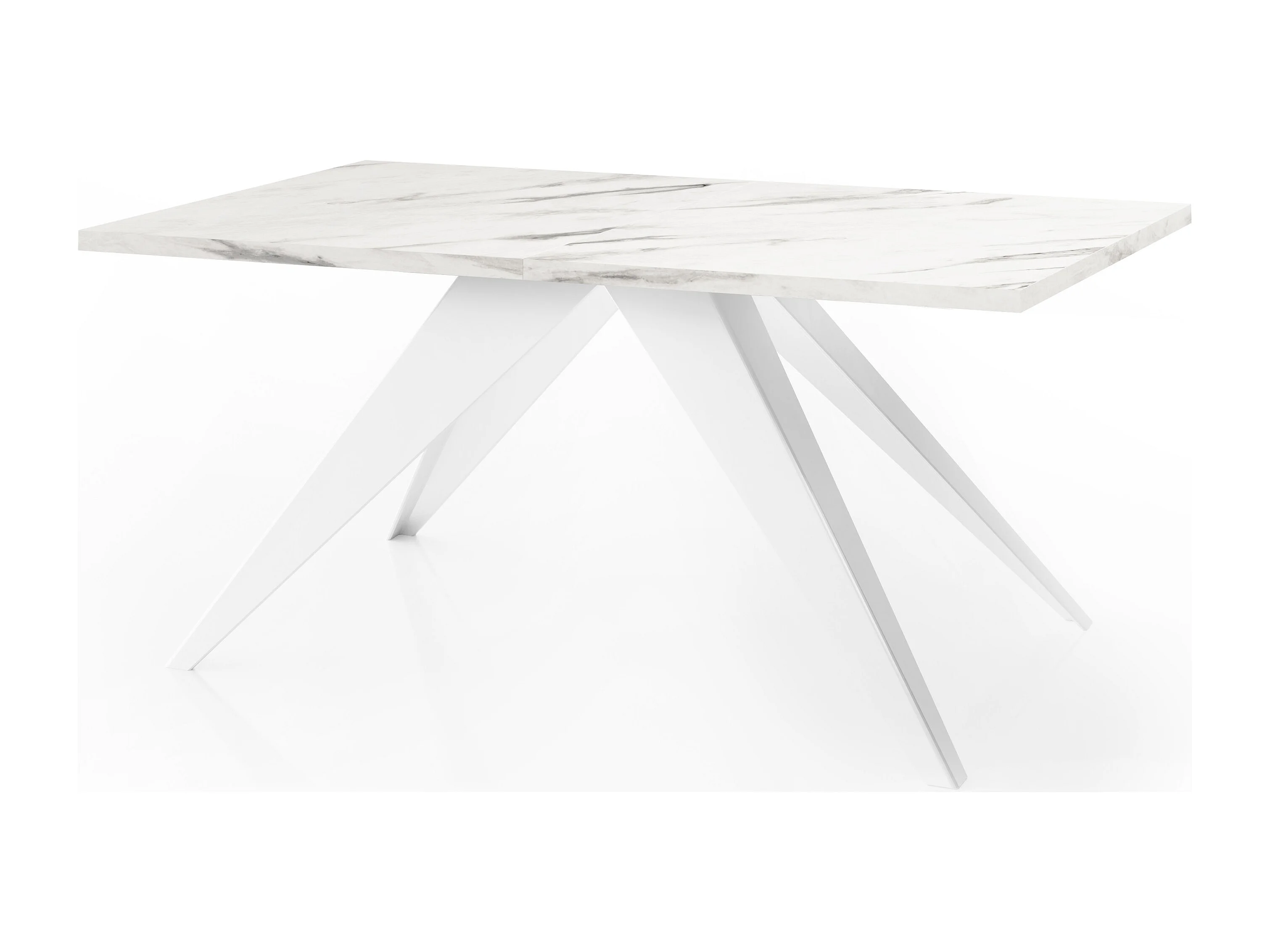 Table à Manger Vance Style Moderne - Table Rectangulaire Extensible de 140 à 240 cm, Pieds en Métal Blanc Revêtement Poudre - 140 x 80 cm - Marbre Blanc