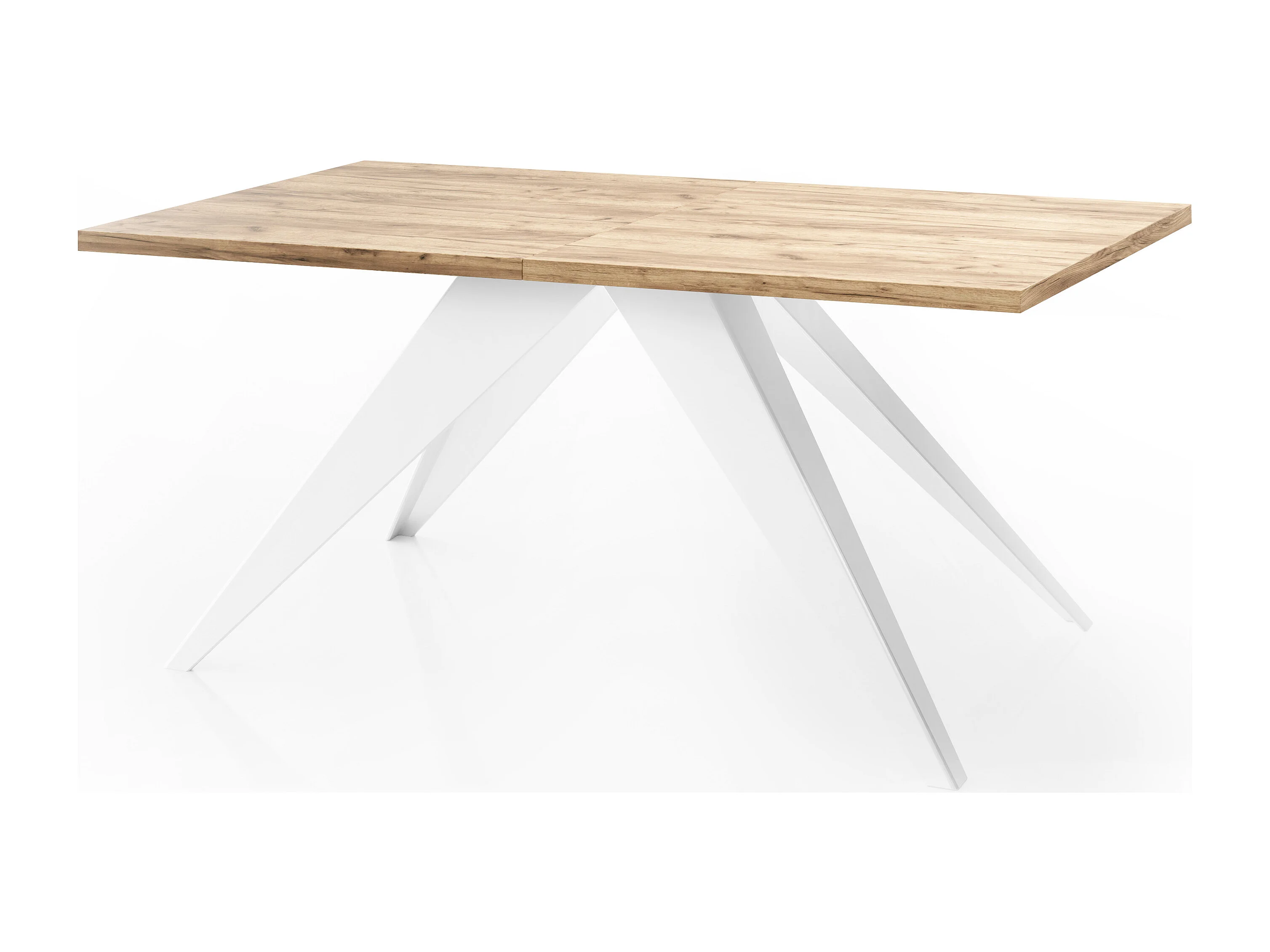 Table à Manger Vance Style Moderne - Table Rectangulaire Extensible de 160 à 260 cm, Pieds en Métal Blanc Revêtement Poudre - 160 x 90 cm - Chêne Craft