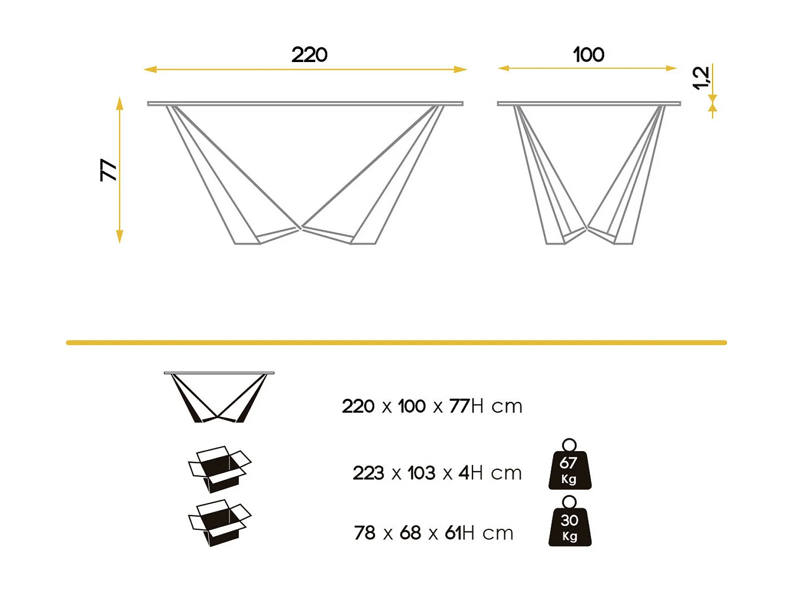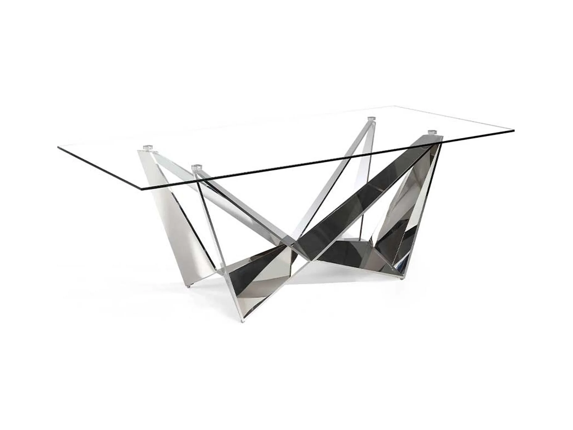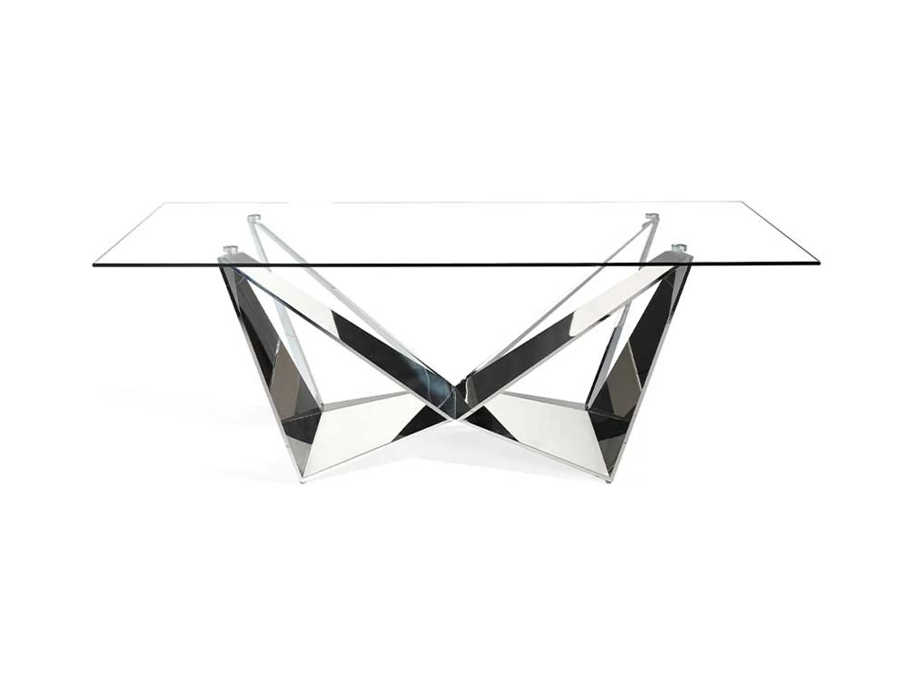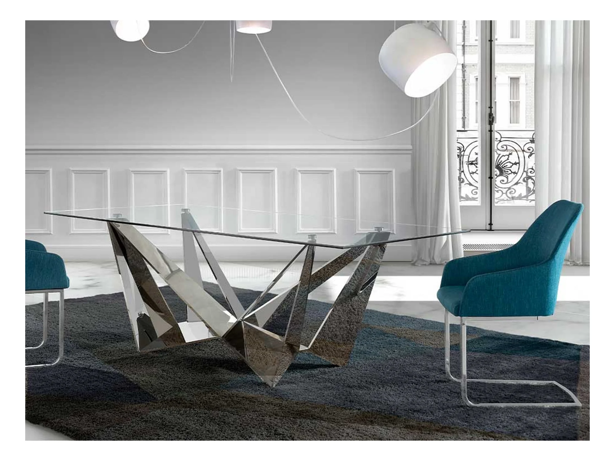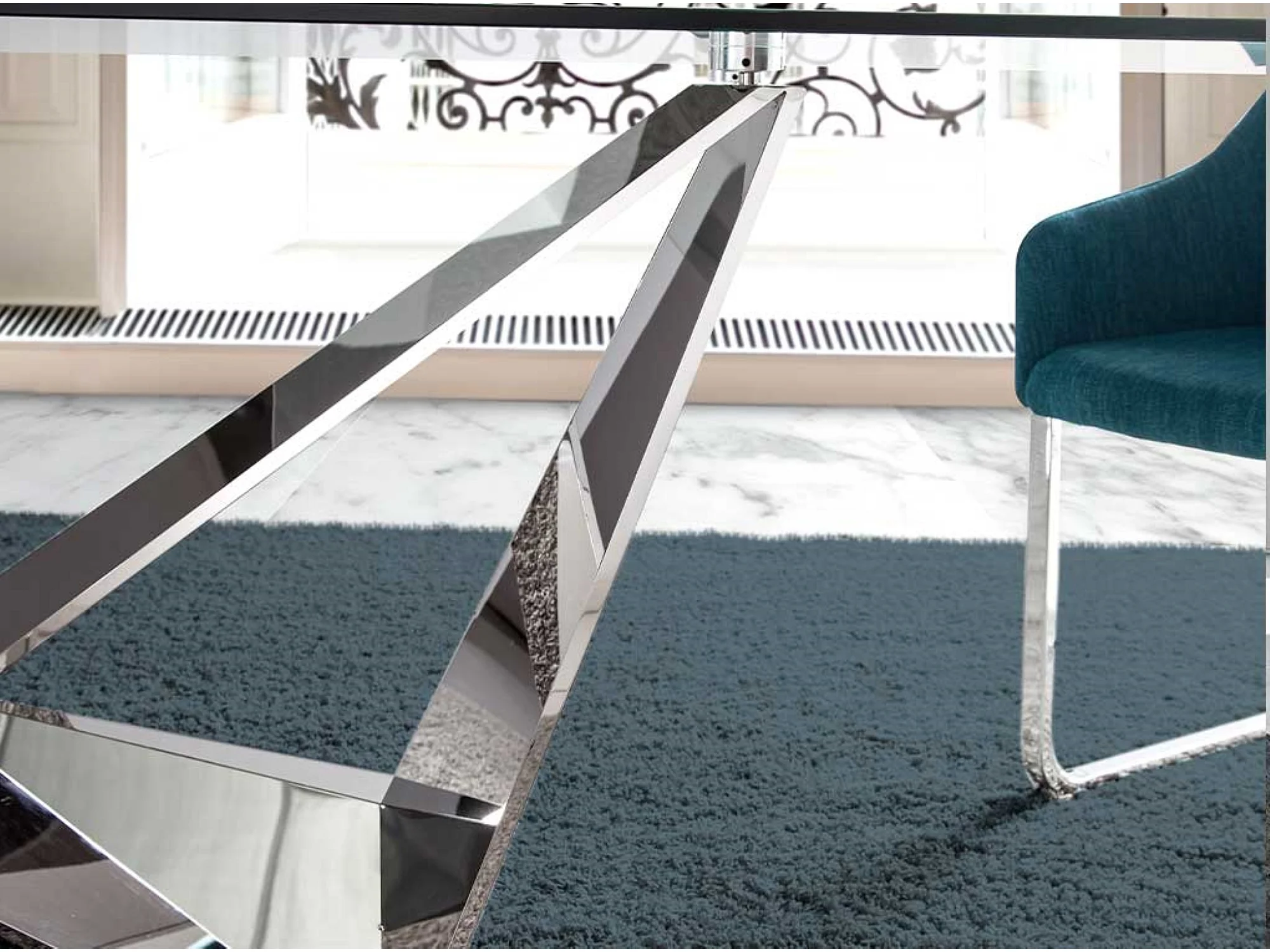 Table à manger verre trempé et pieds métal chromé Bazika 220cm