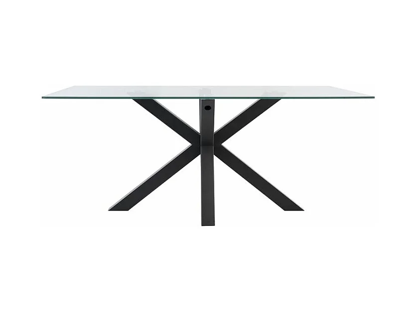 Table à manger moderne Trikano – Verre trempé et pieds métalliques-Couleur Noir-Largeur 160 cm