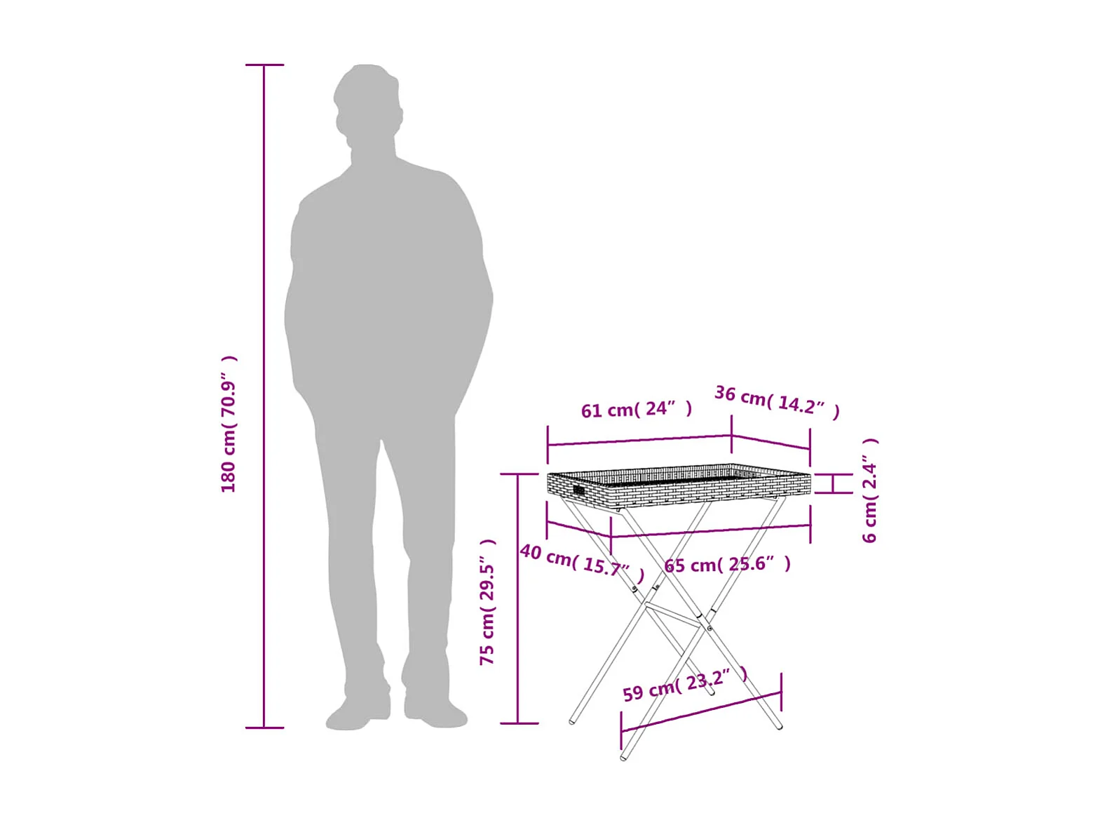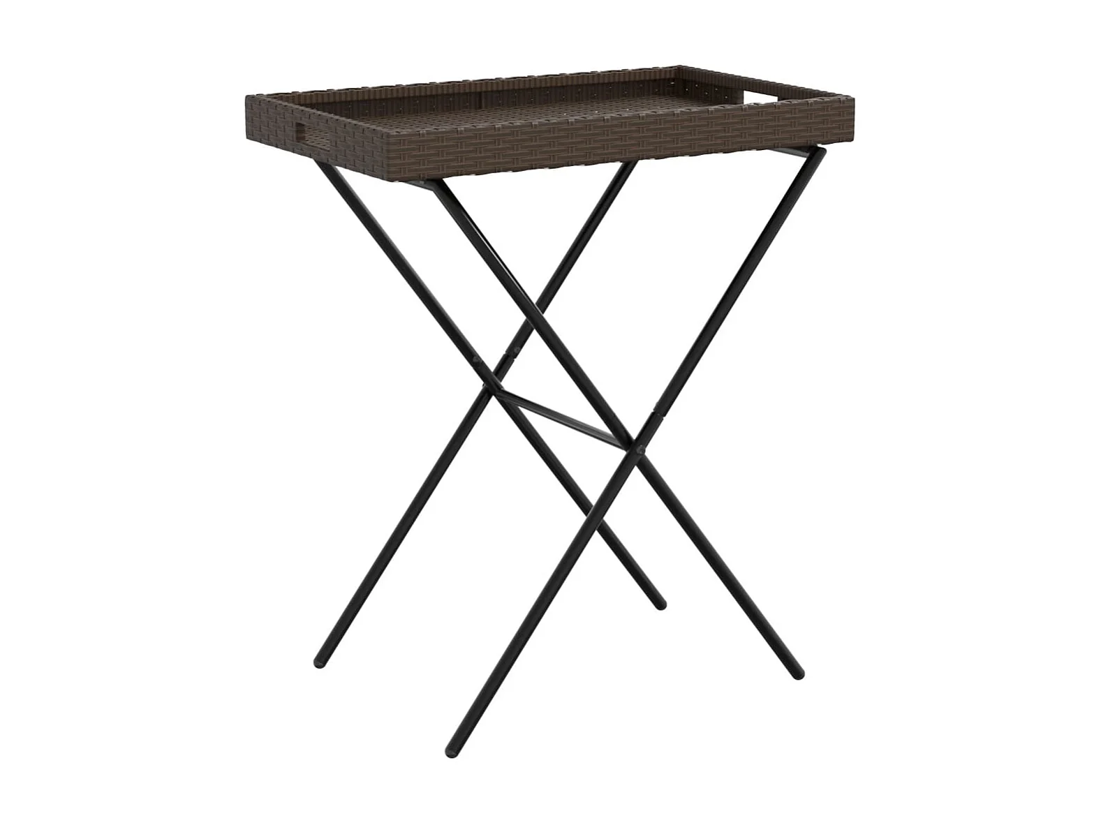 Table à plateau pliable marron 65x40x75 cm résine tressée FR973362