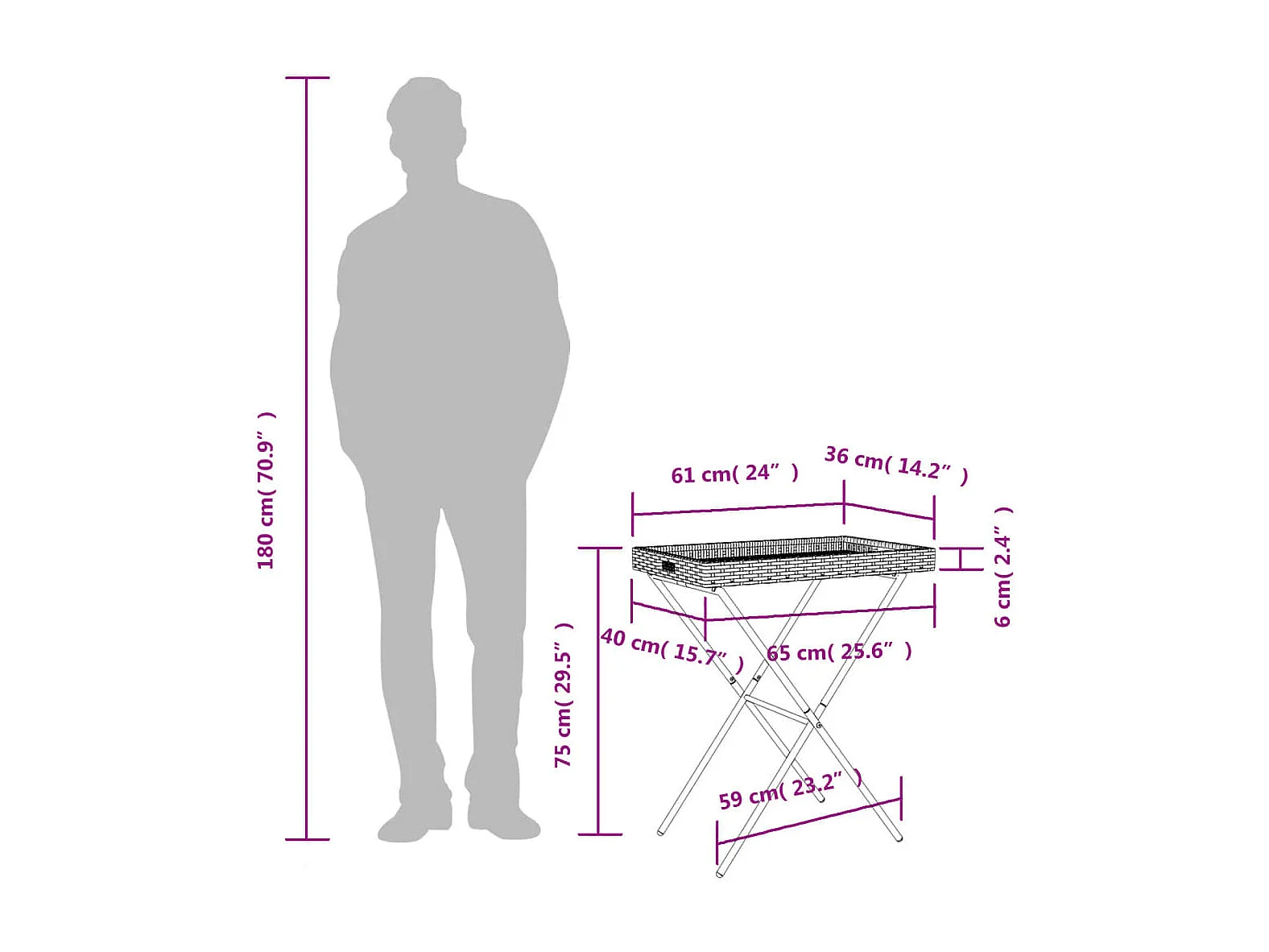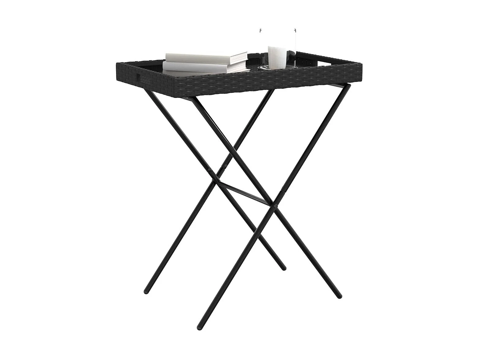 Table à plateau pliable noir 65x40x75 cm résine tressée FR575917