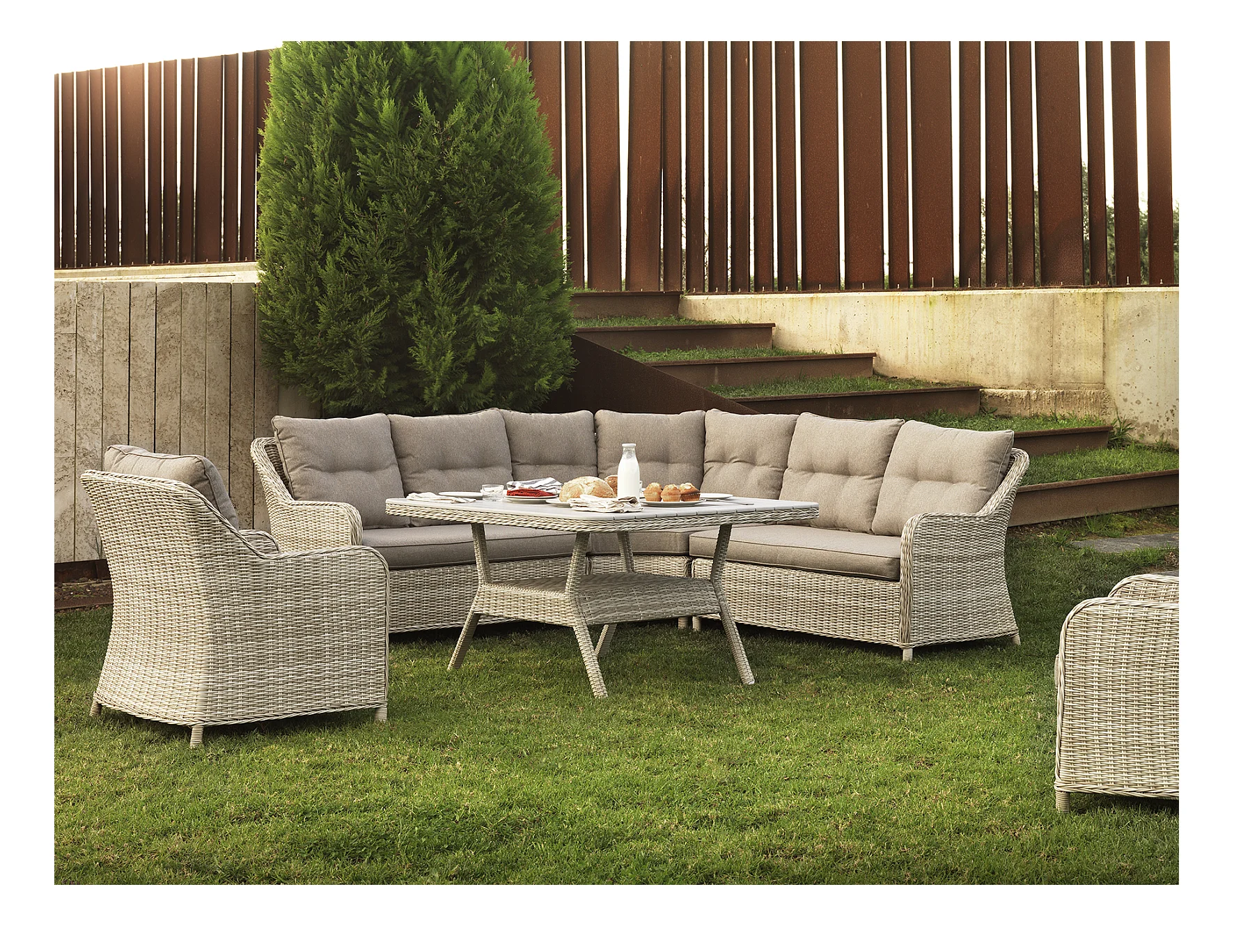 Table aluminium fibre marron plateau lames de fibre gris 120X120