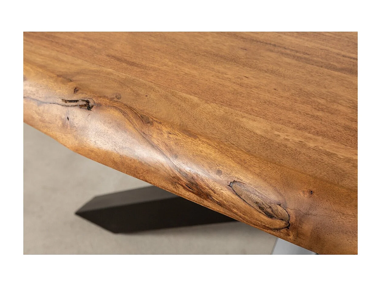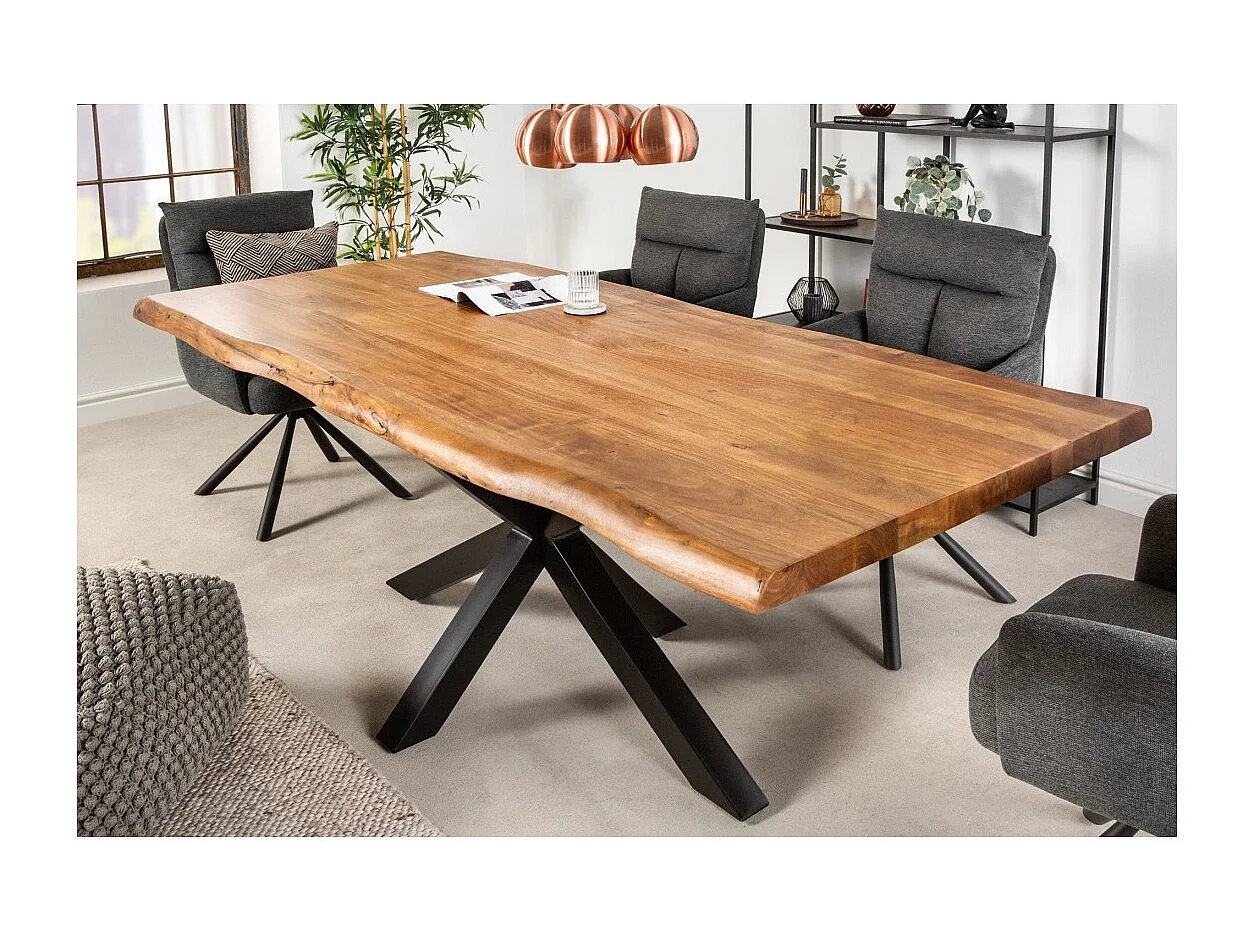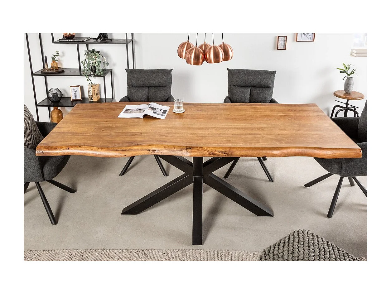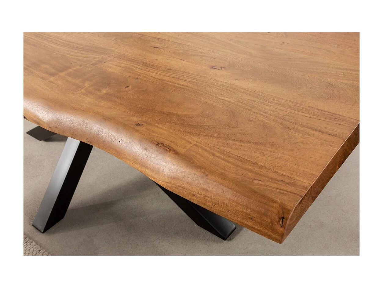 Table ARKAYA 220 cm – Plateau en bois massif d'acacia verni et structure en métal noir – Design industriel et élégant