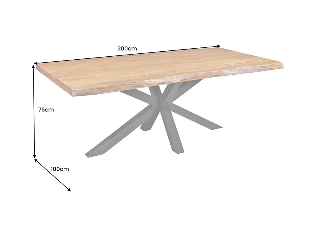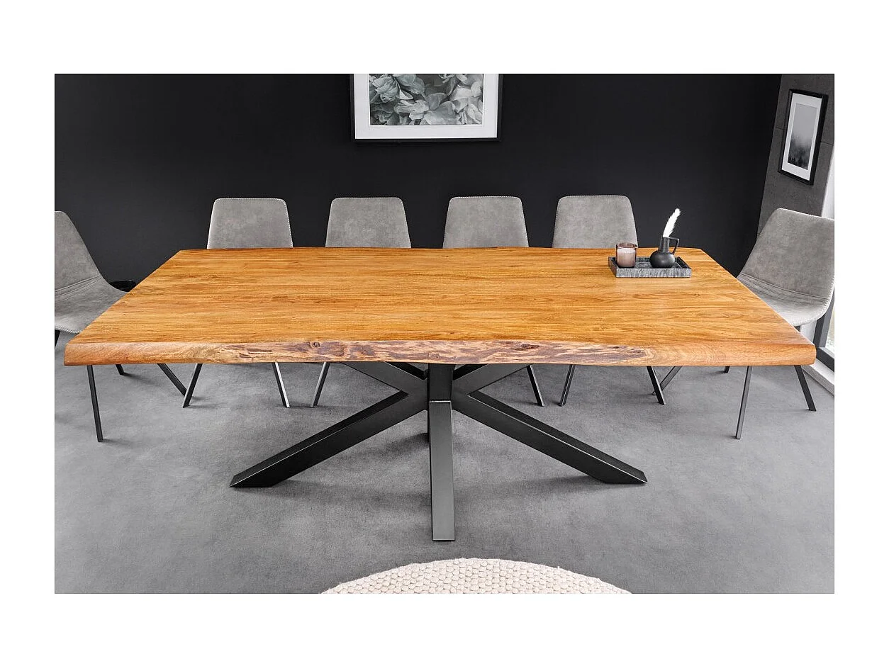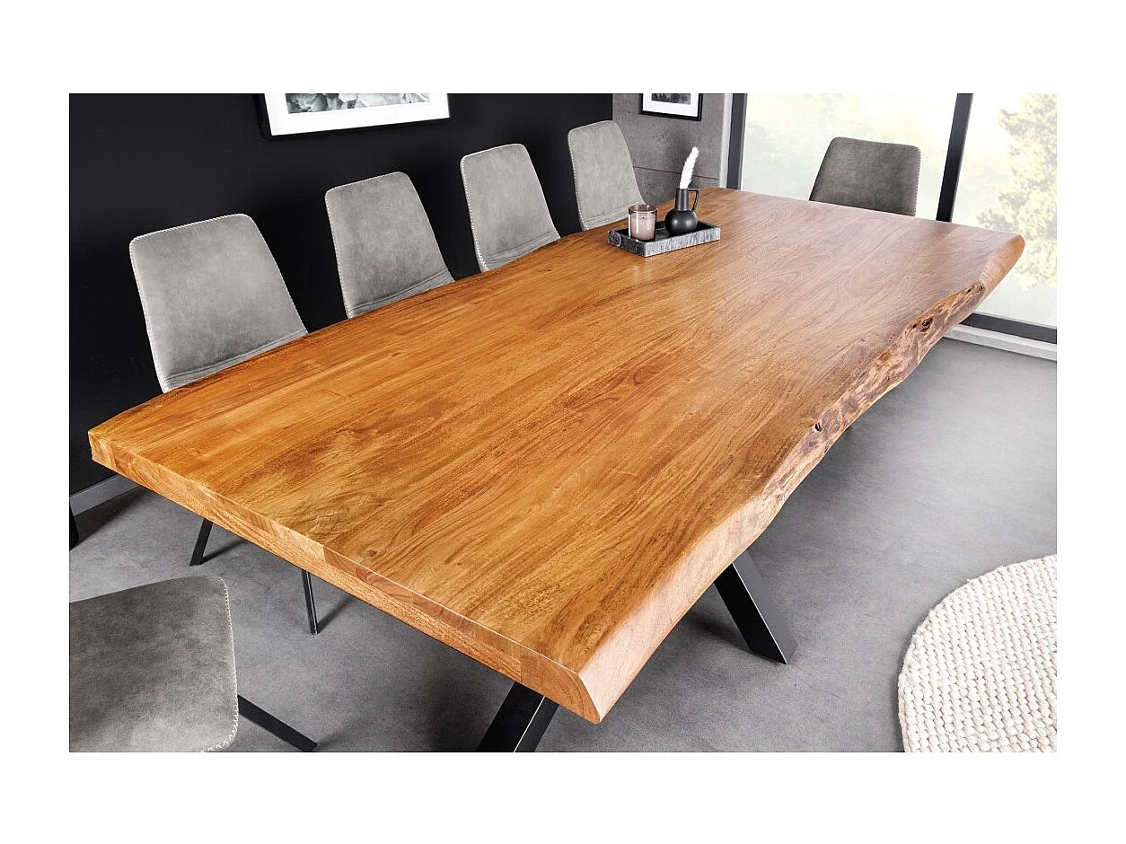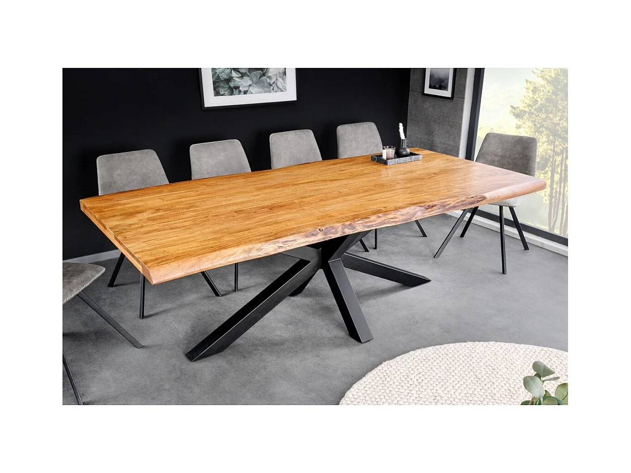 Table ARKAYA – Bois massif d'acacia verni et métal noir – 200 cm – Style industriel