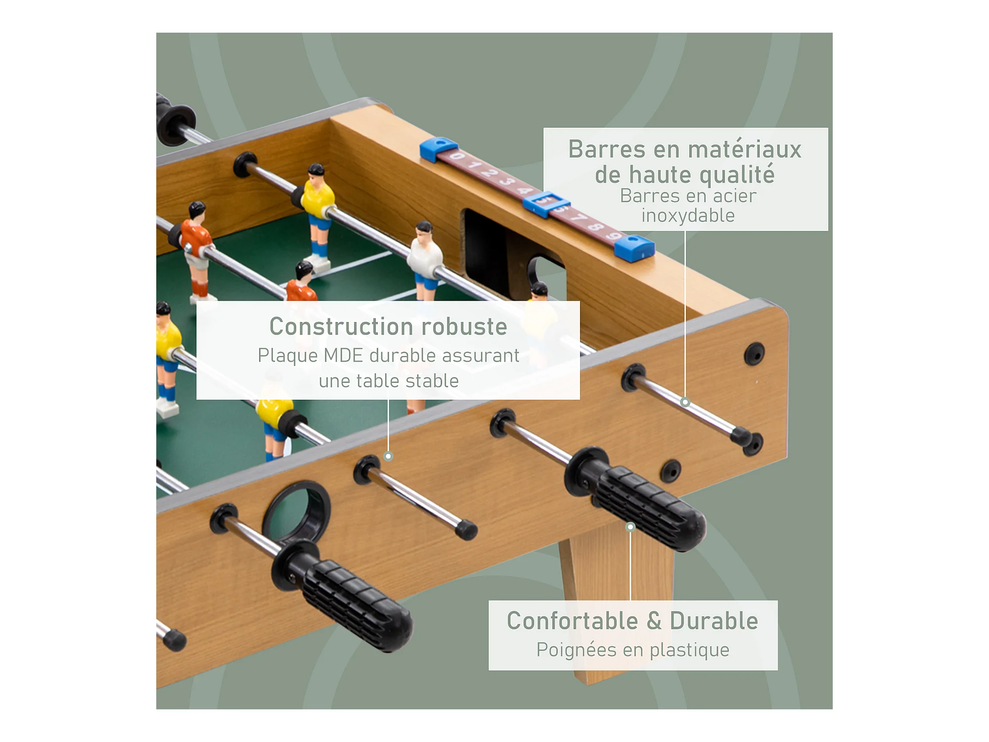 Baby-foot pliable - Barres télescopiques - Robuste - 2 à 4 joueurs - 3 Balles liège inclues