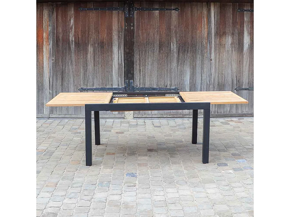 Table BALIteck 6/10 personnes structure aluminium noire, plateau en lame de Teck