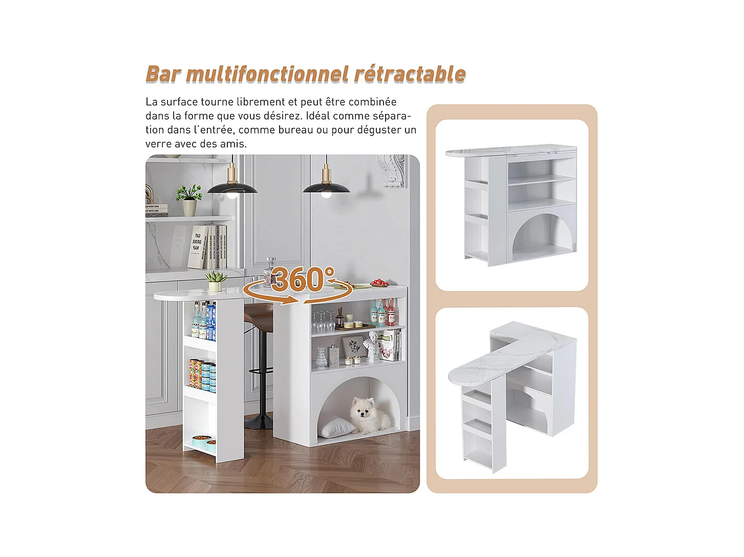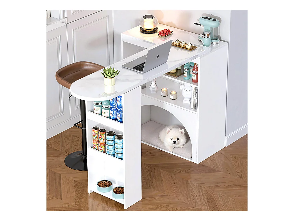 Table bar extensible pivotante espace animaux sans gamelle plateau marbre blanc