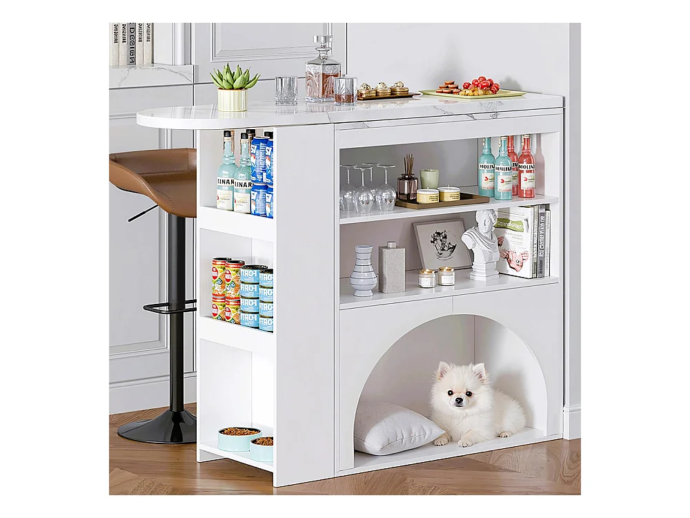 Meube de bar extensible - 120 x 40 x 100 cm - avec rangement + espace pour animaux - MDF - blanc