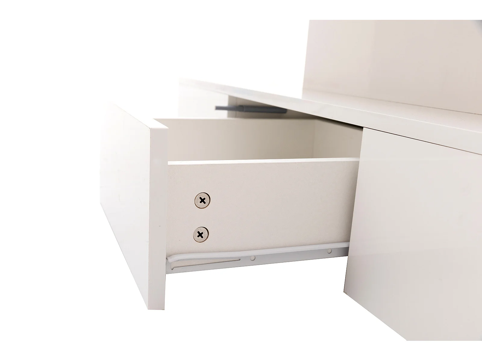 Table bass avec tiroirs, laque brillante, table avec deux niveaux de rangement, lumière LED, 100 L x 50 B x 39Hcm Blanc