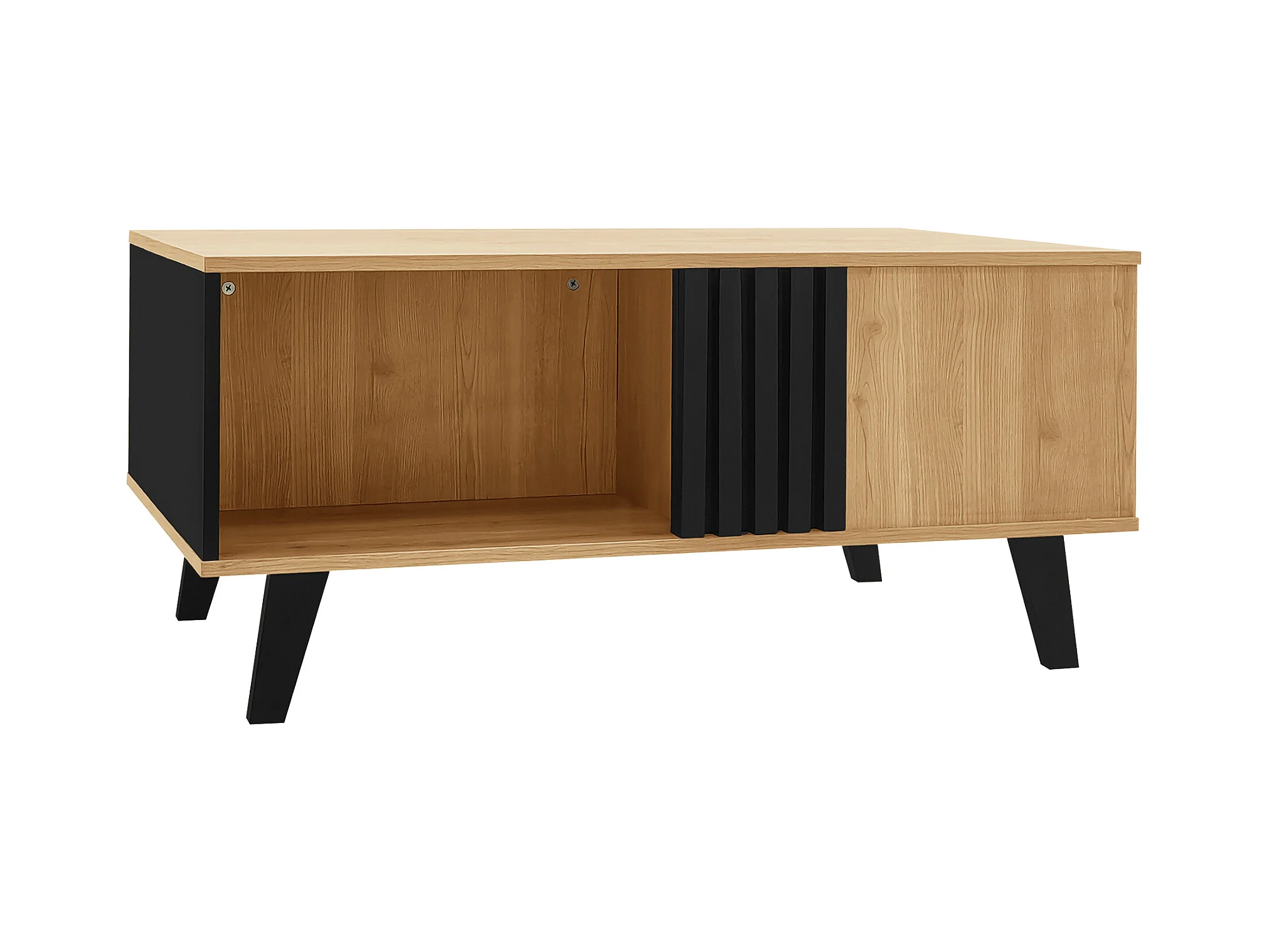 Table basse 100 x 60 x 45 cm en bois coloré et design noir, table de salon avec table d'appoint à tiroir