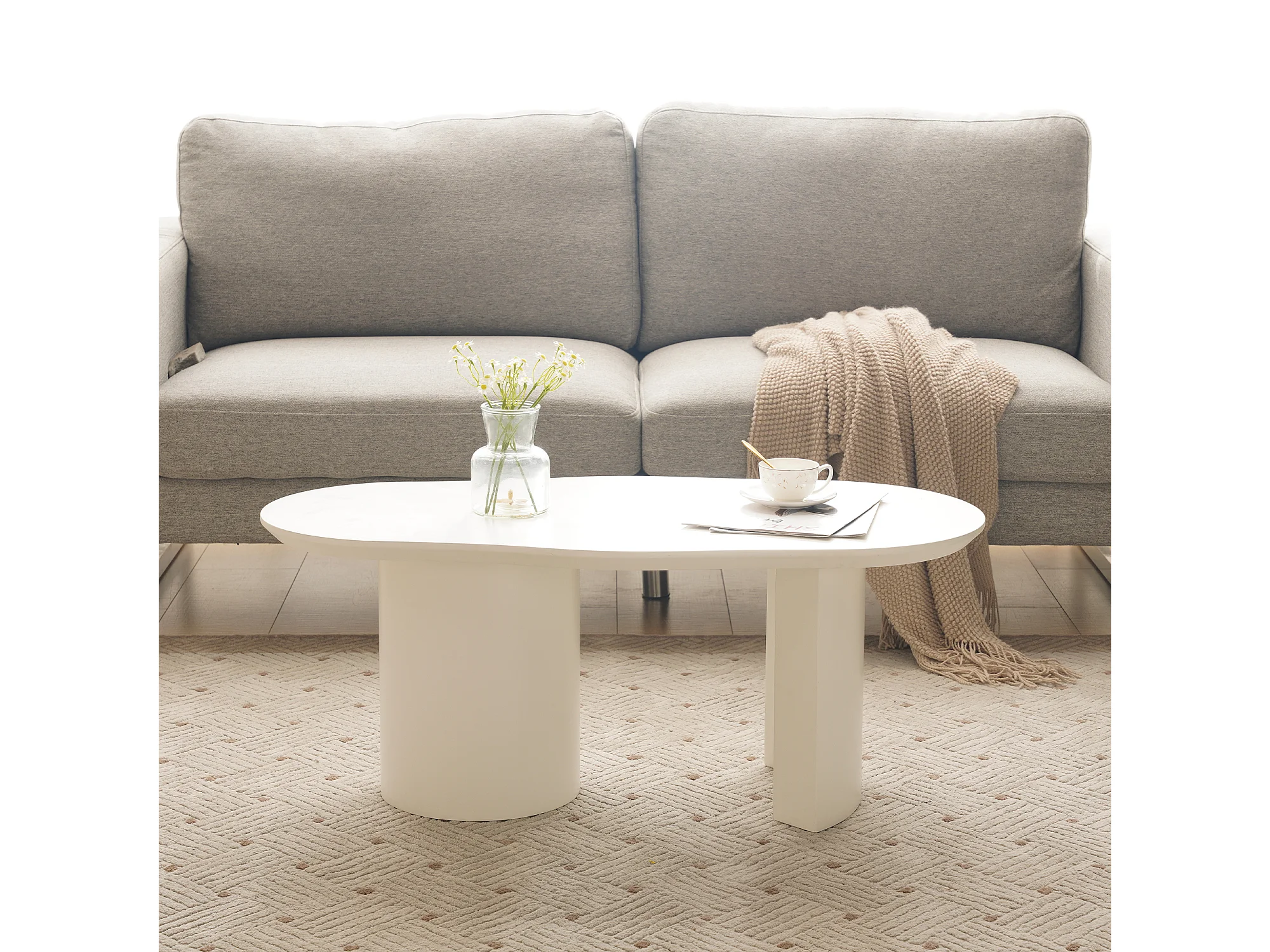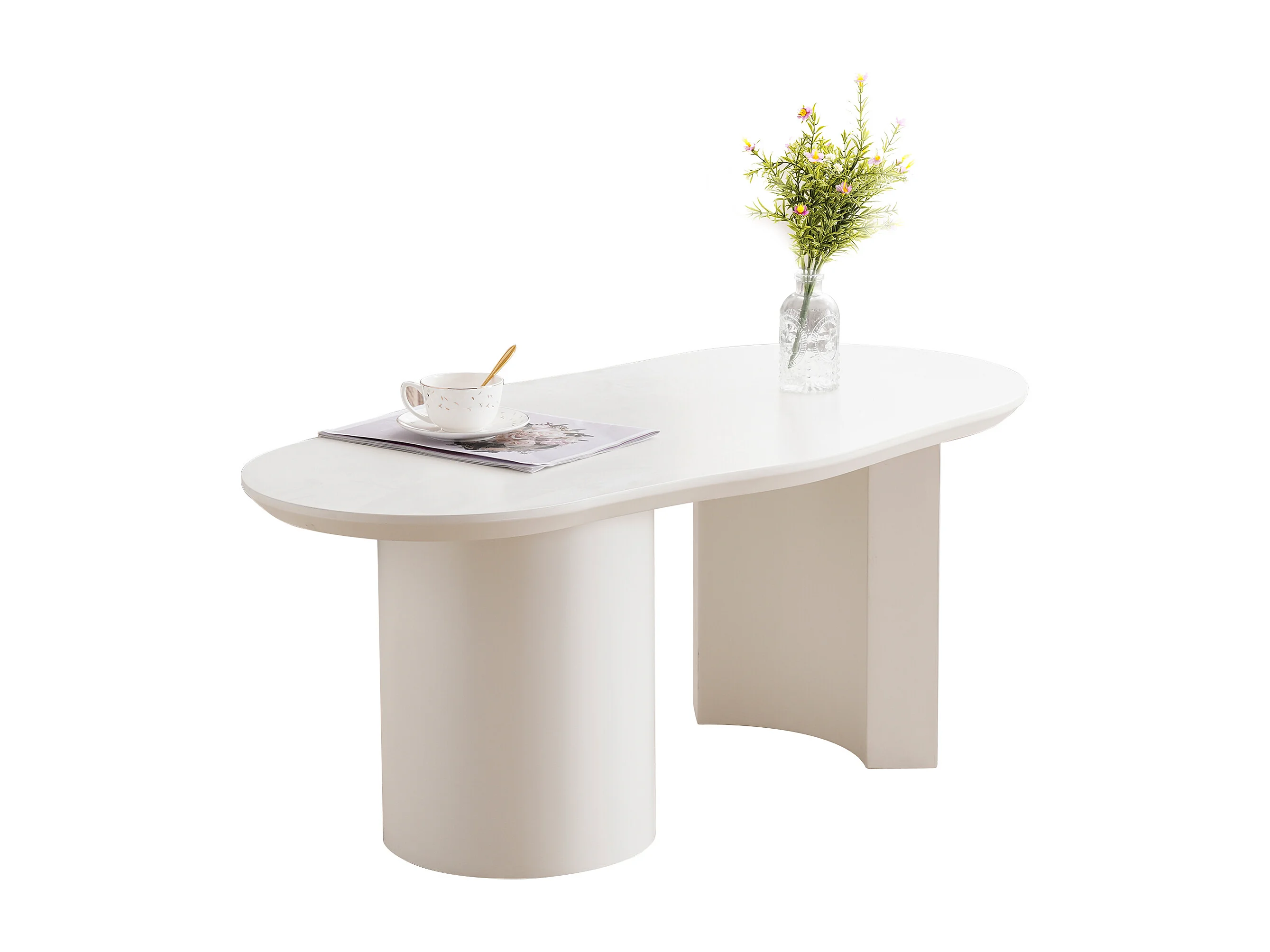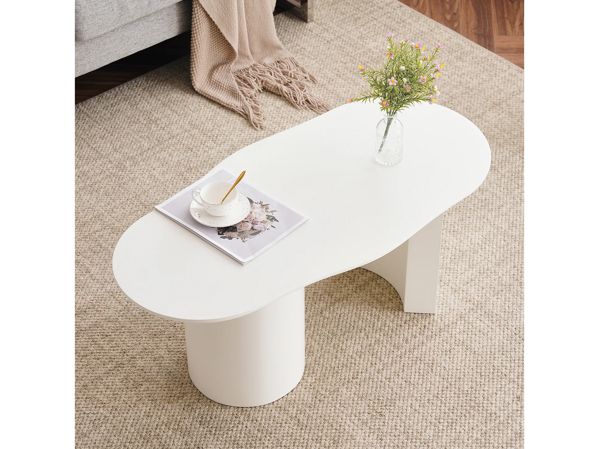 Table basse 113x58x40.5cm forme os irrégulière plateau MDF et pieds PVC Blanc pour salon