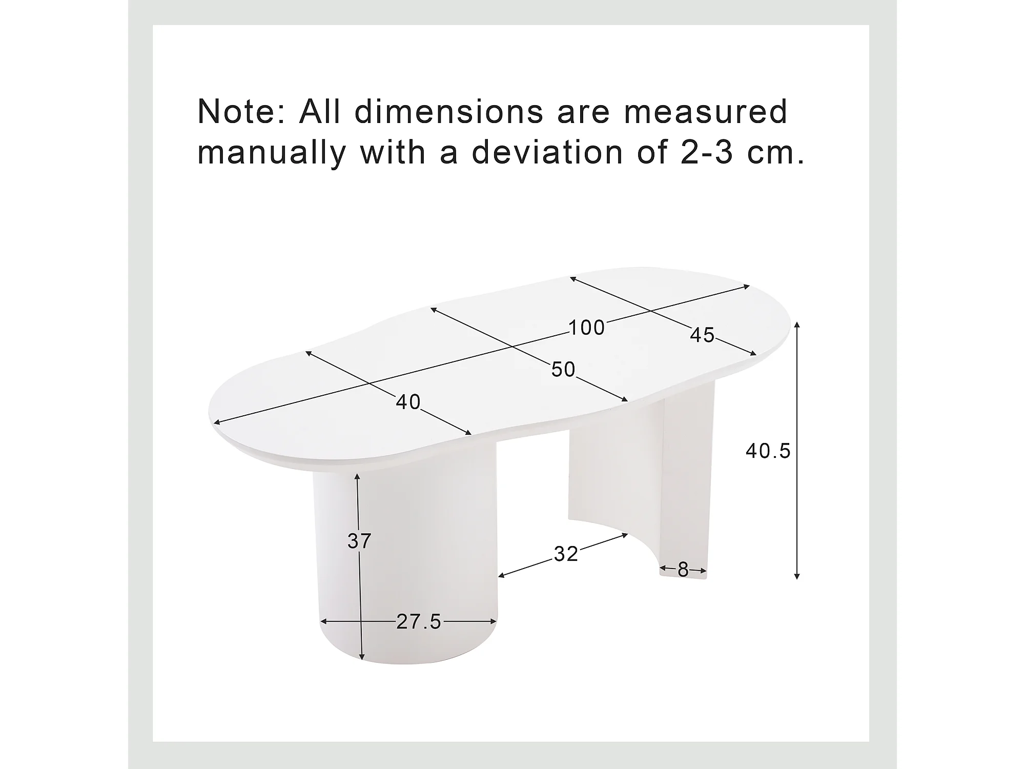 Table basse 100x50x45 cm forme libre MDF blanc pour salon
