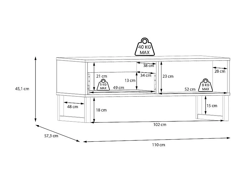 Table basse 110 cm décor gris clair mat poignées métal noir - ASTORIA