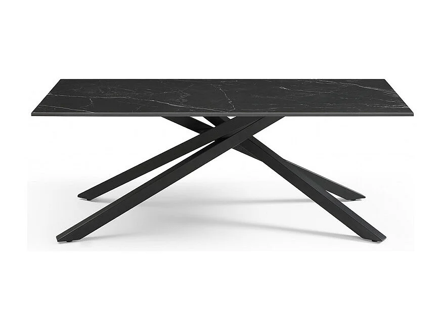 Table basse 120x60 cm céramique noir marbré pied torsadé - INDIANA 05