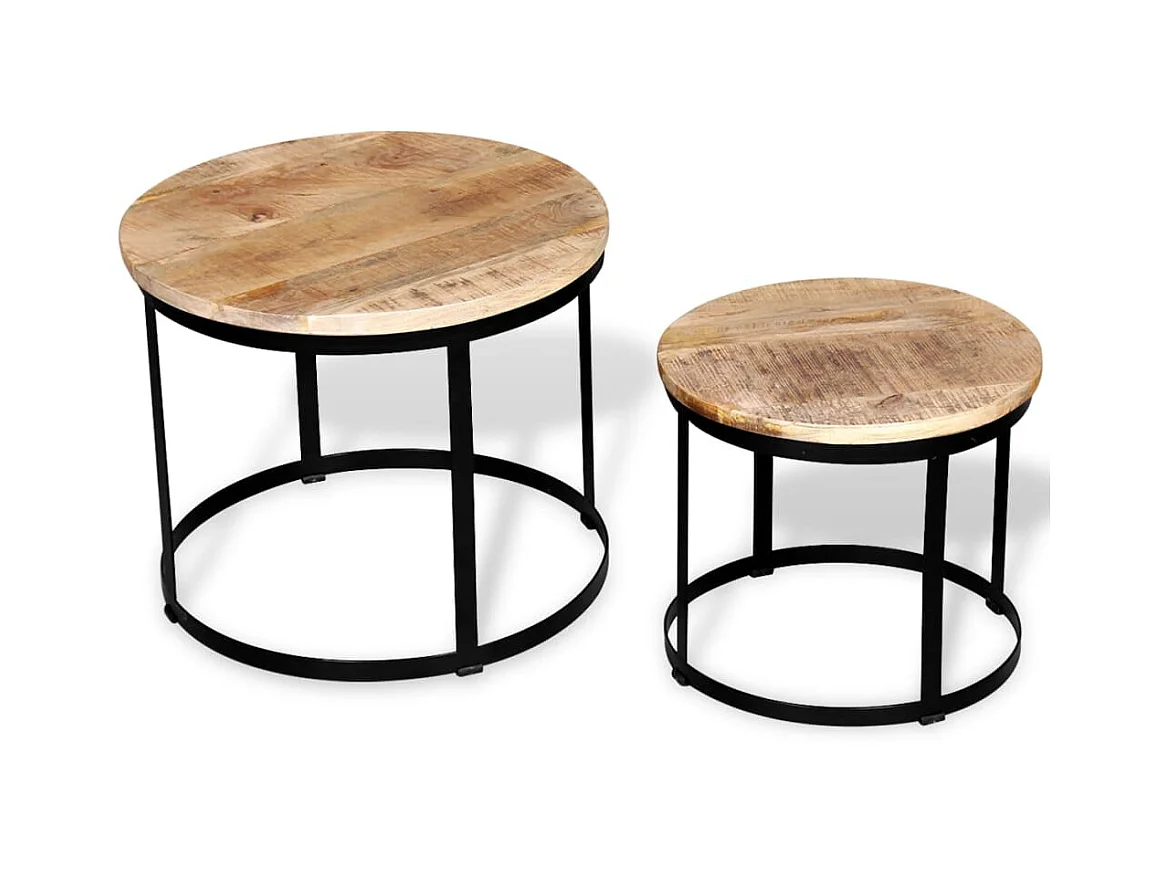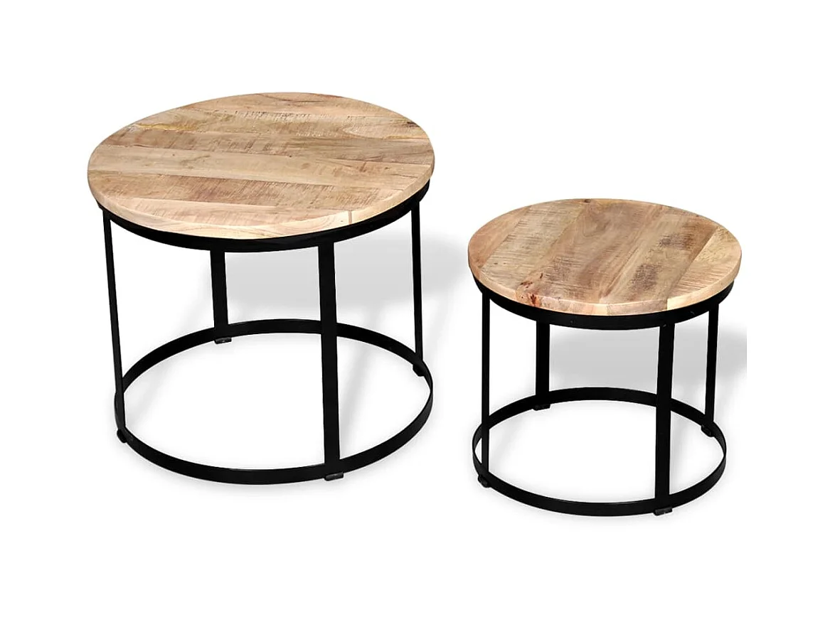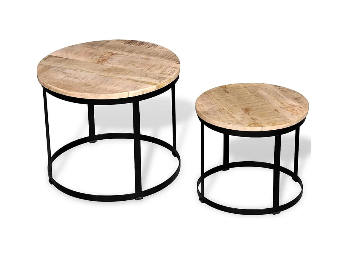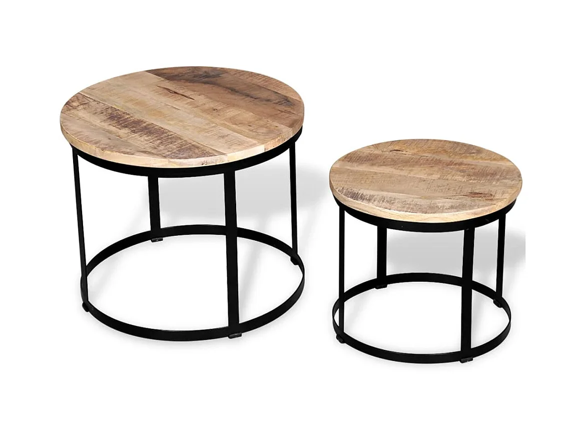 Table basse 2 pcs Bois de manguier brut Rond 40/50 cm OFR72250 BonneVie Meuble