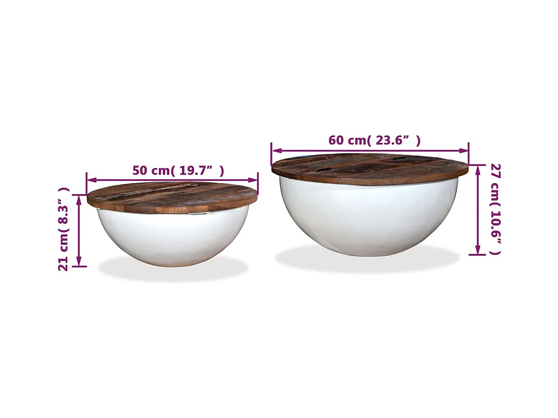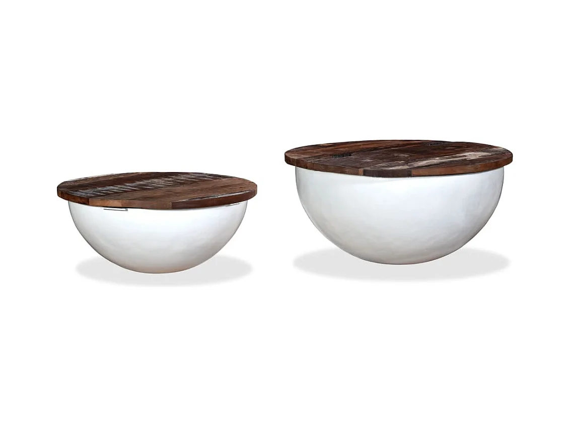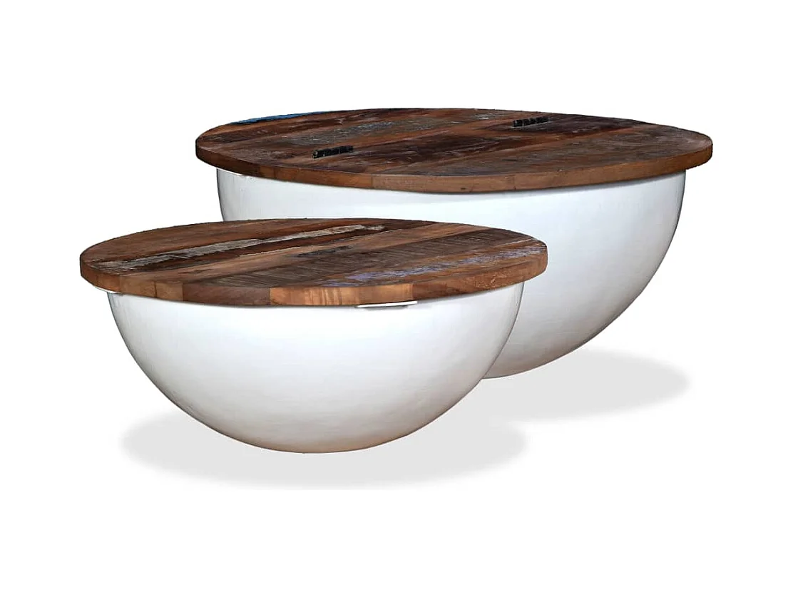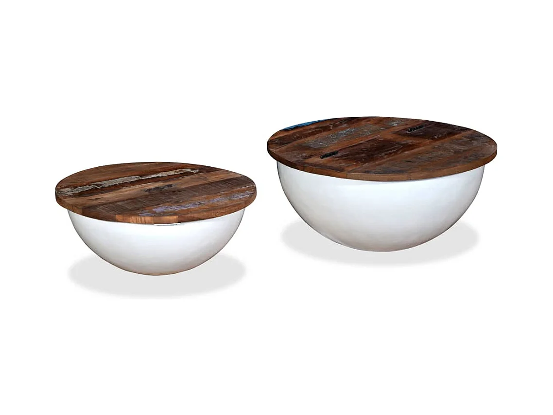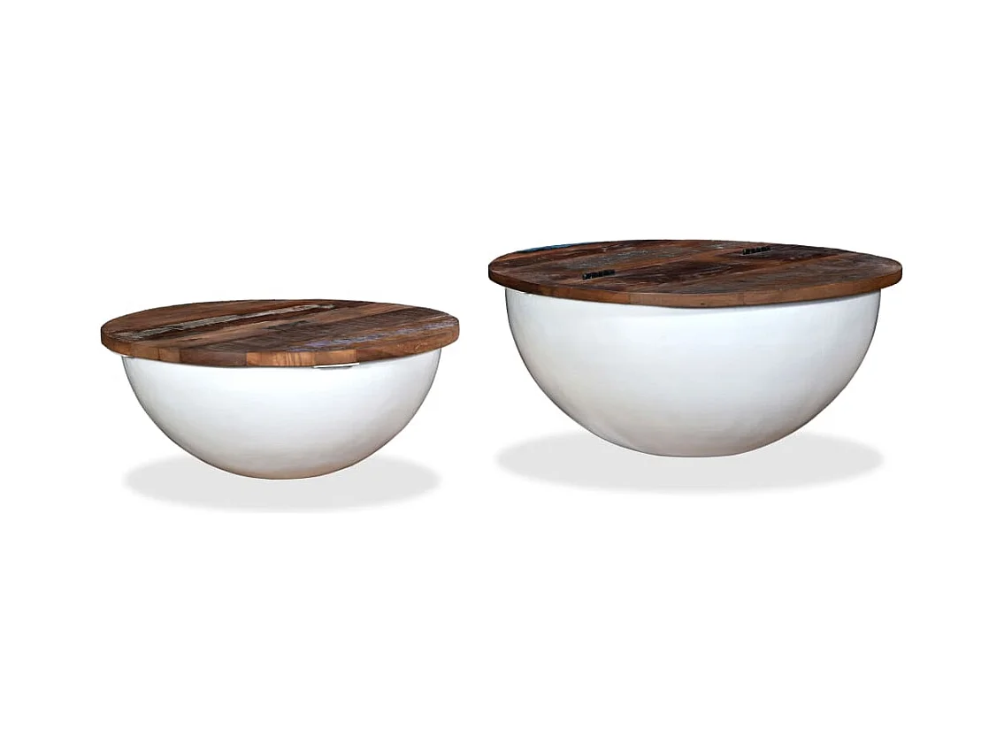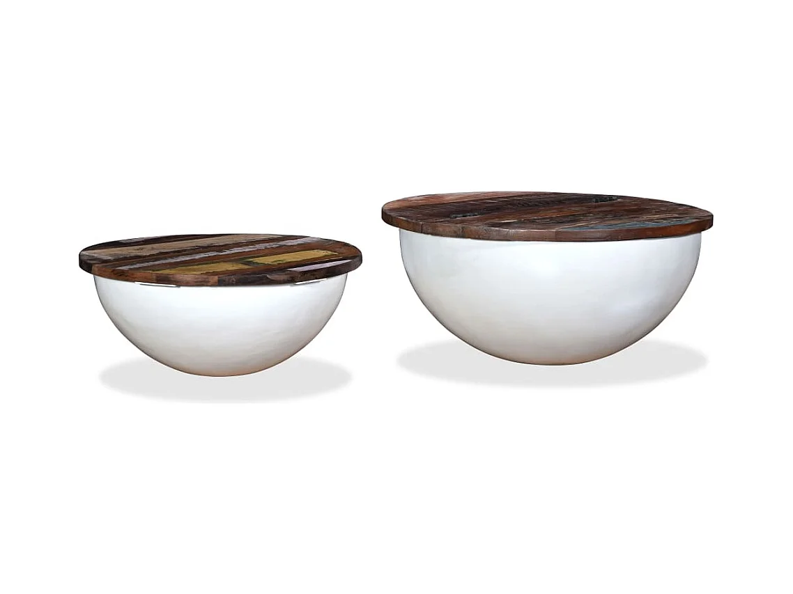 Ensemble de table basse 2pcs Bois récupération massif forme bol