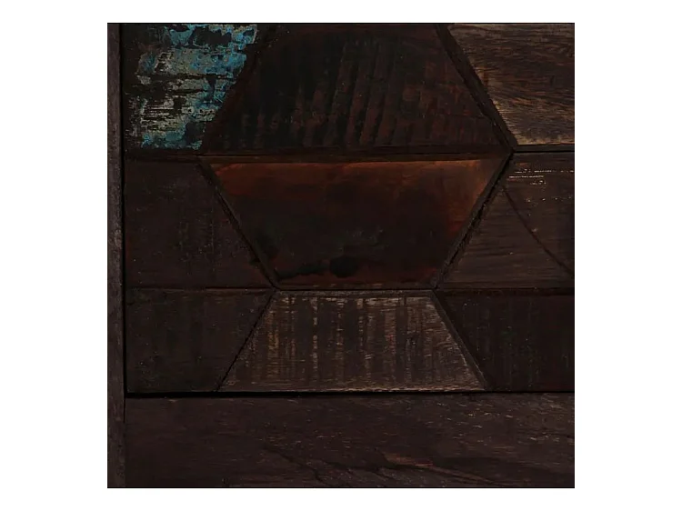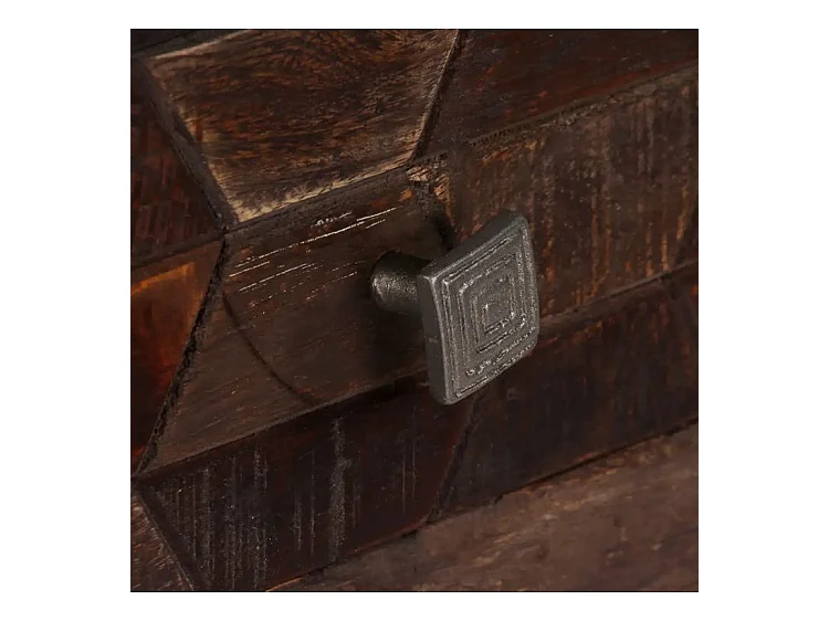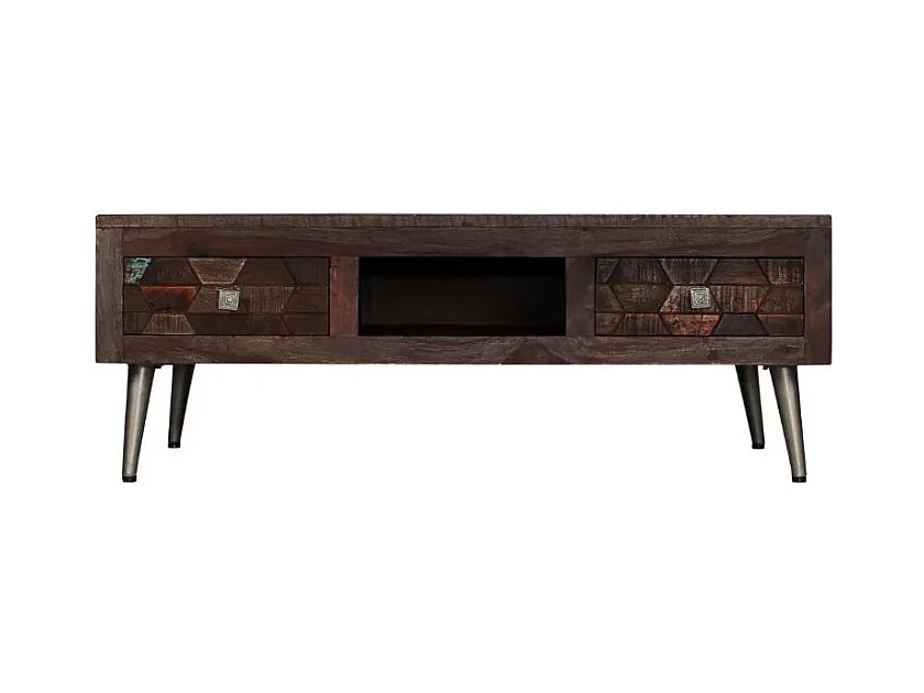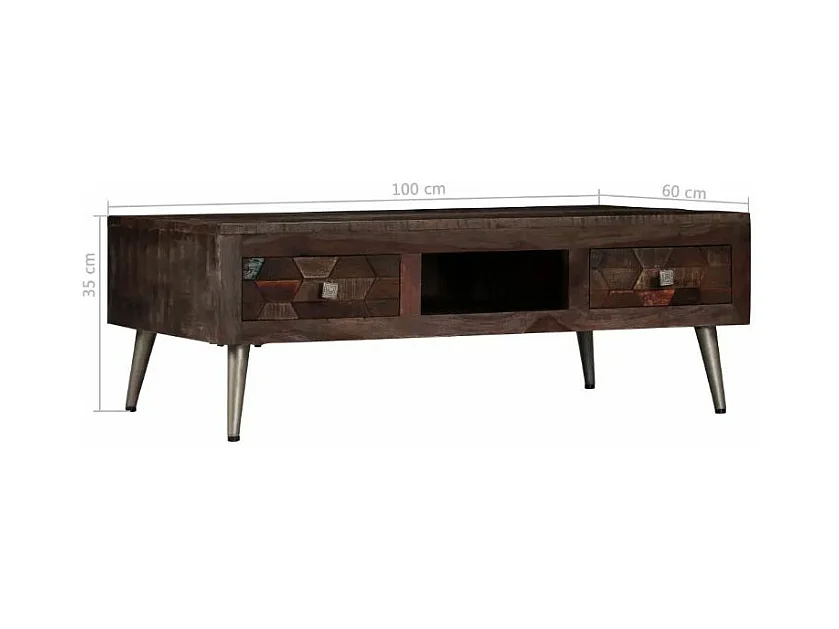 Table basse 2 tiroirs bois massif recyclé foncé et pieds métal gris Claireauta