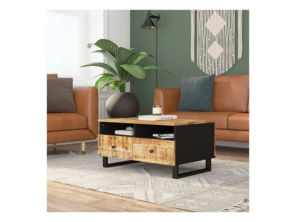 Table basse 80x54x40 cm Bois de manguier solide et d'ingénierie OFR65786 BonneVie Meuble