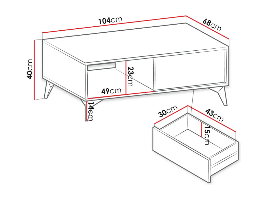 Table basse Alelmo 100, Noir|Chêne clair, 40x68x104cm, Stratifié, Angulaire