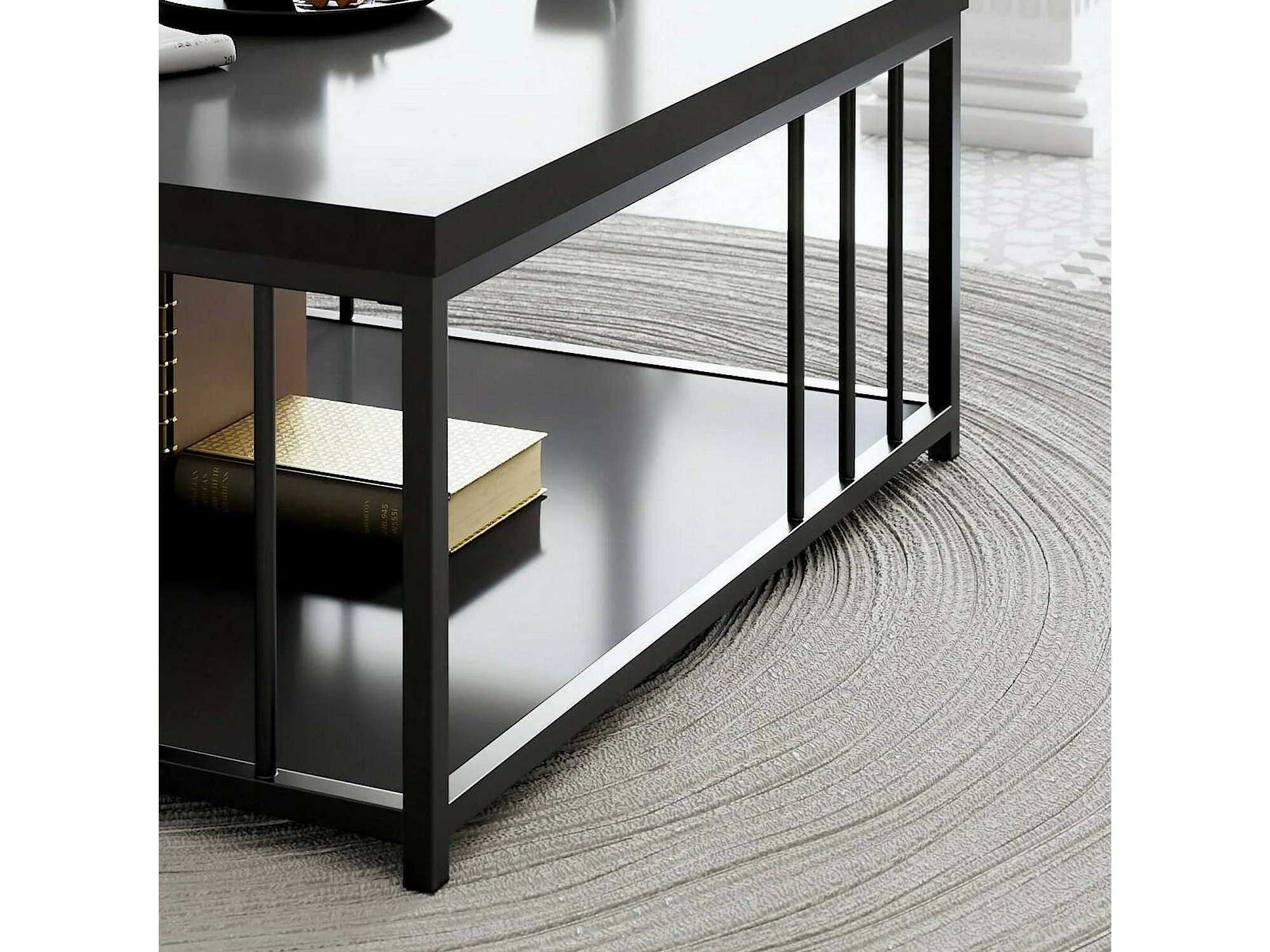 Table basse Ankaa, Table basse, Porte-revues pour canapé, Etagère de salon, 90x90h40 cm, Anthracite et Noir