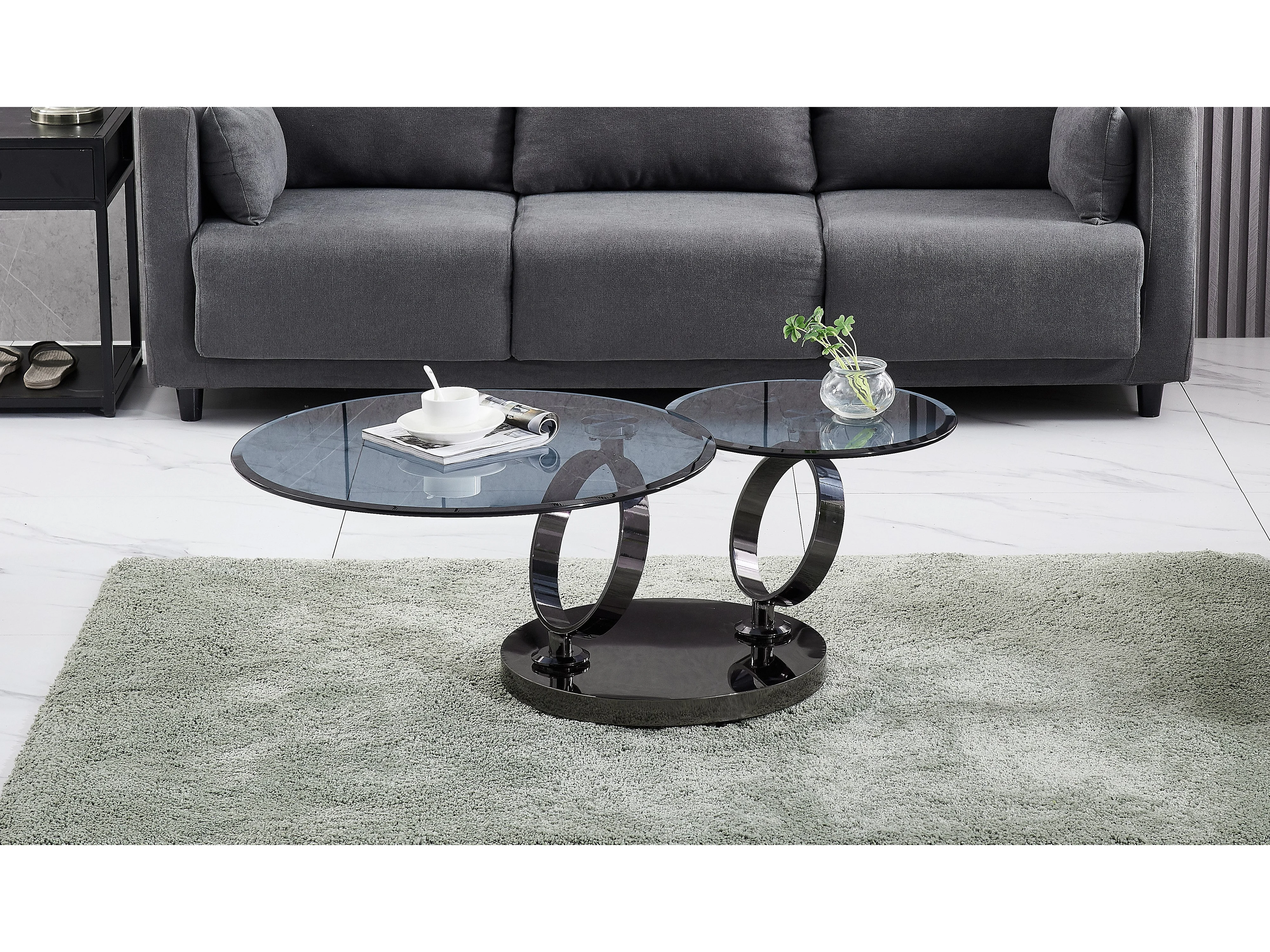 Table Basse AUTOMAT – Verre Fumé & Métal Noir – Plateau 80 cm + Rotatif 55 cm