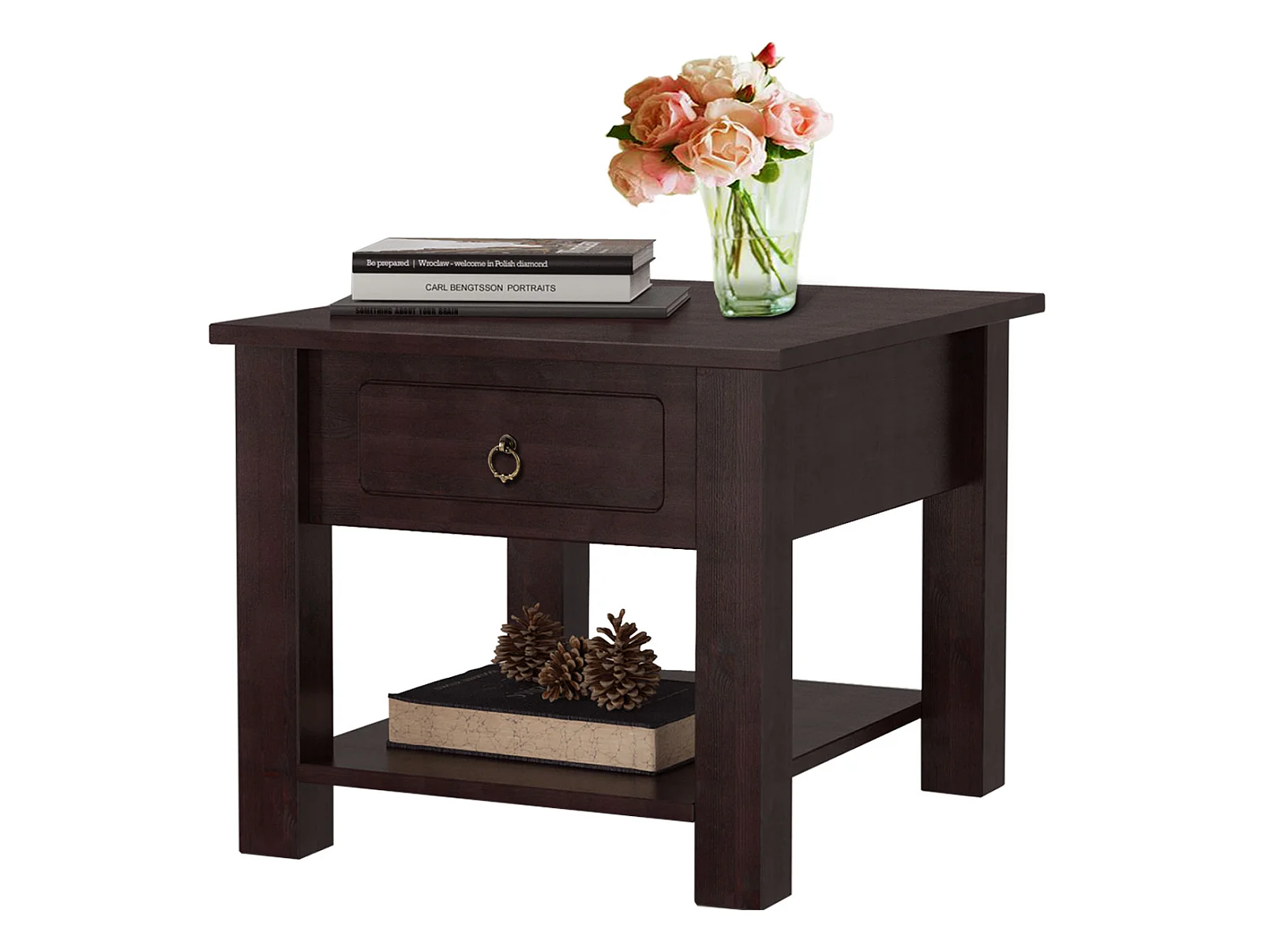 Ines | Table basse avec 1 tiroir en pin marron foncé