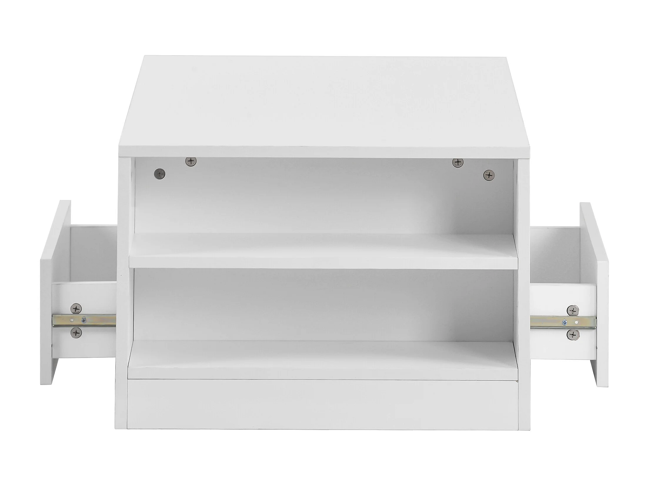 Table basse LED avec 2 tiroirs de rangement et étagères ouvertes - blanc