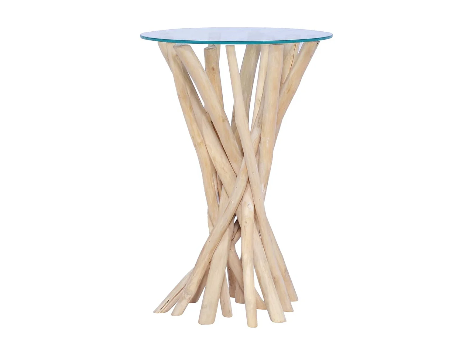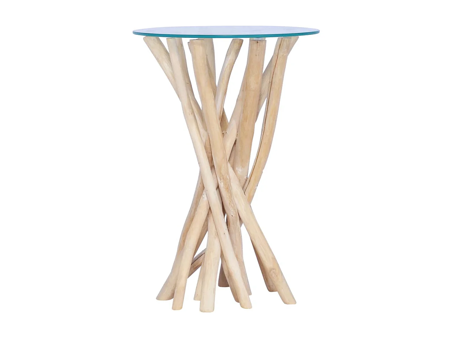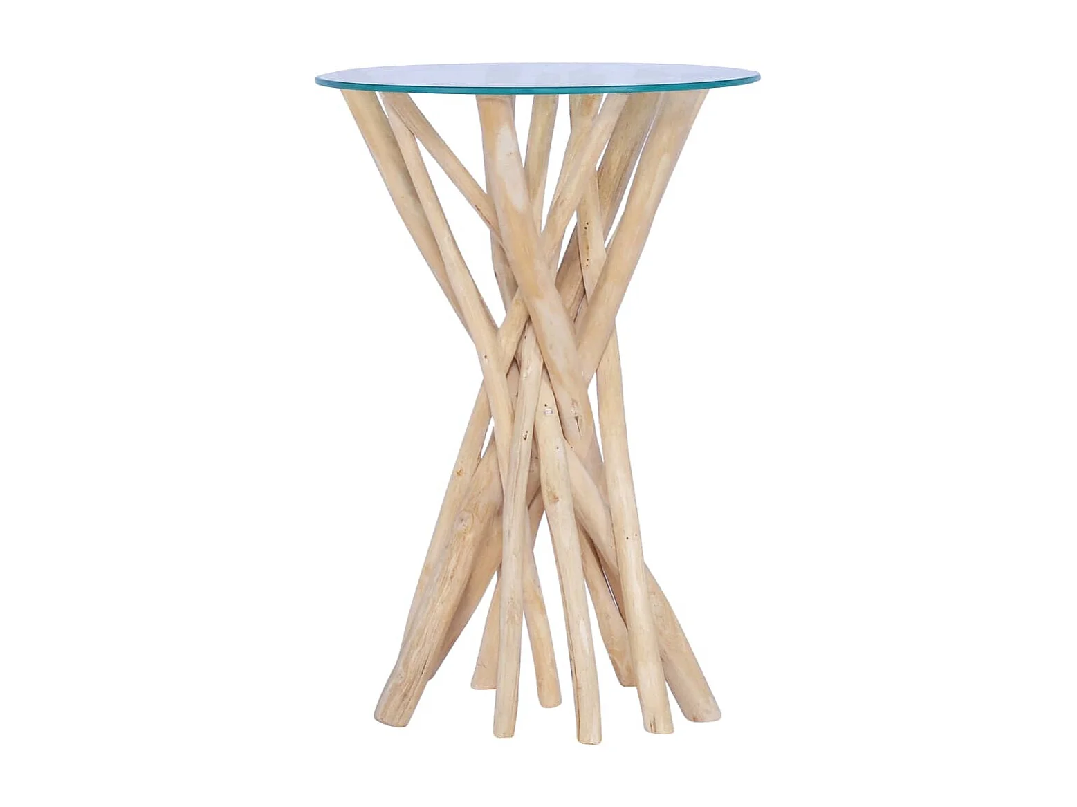 Table basse avec dessus en verre 35x35x50cm Bois de teck massif