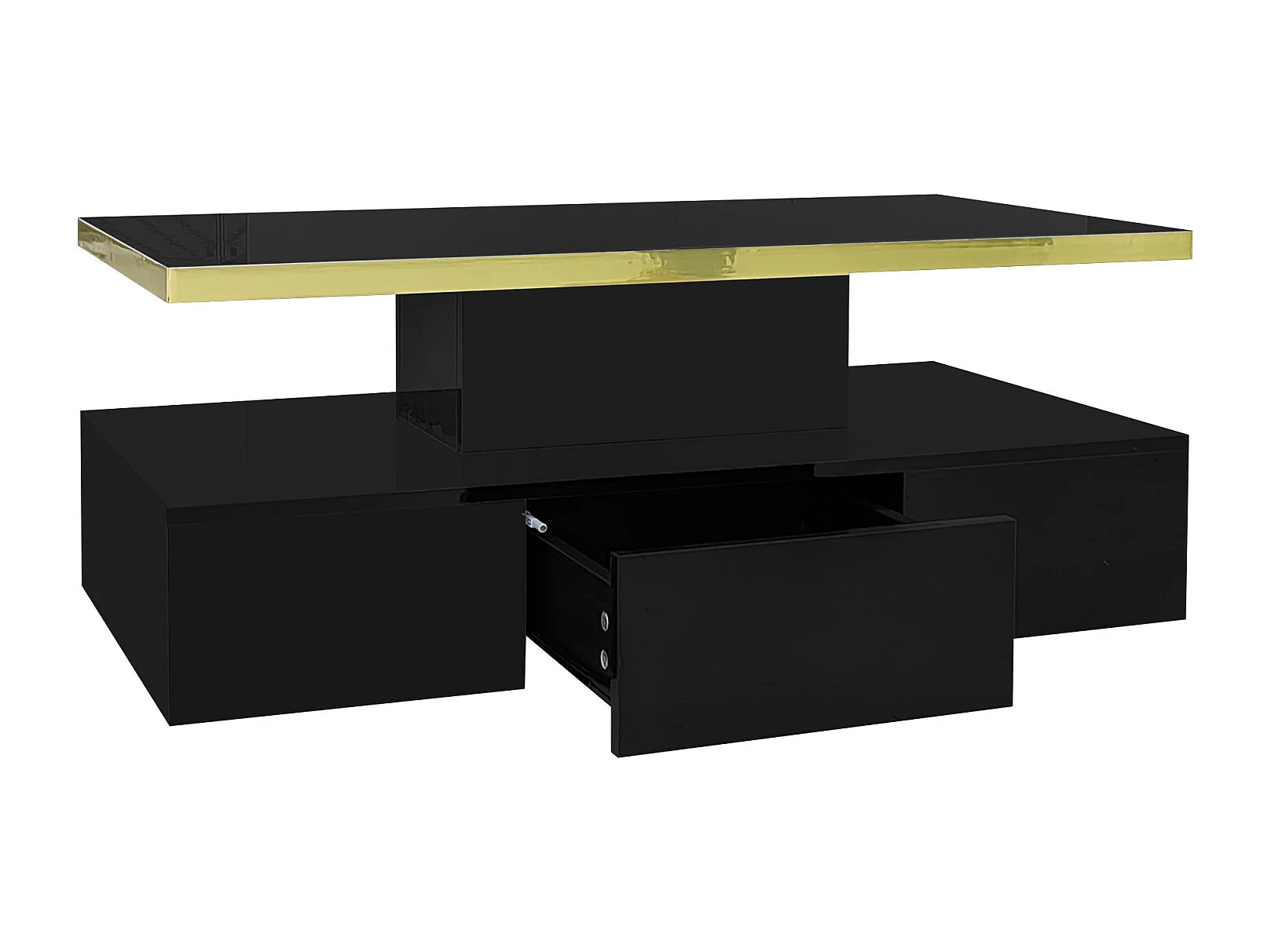 Table basse brillante - 100 x 50 x 30 cm - avec 2 tiroirs + avec Leds - support verre trempé - MDF - noir
