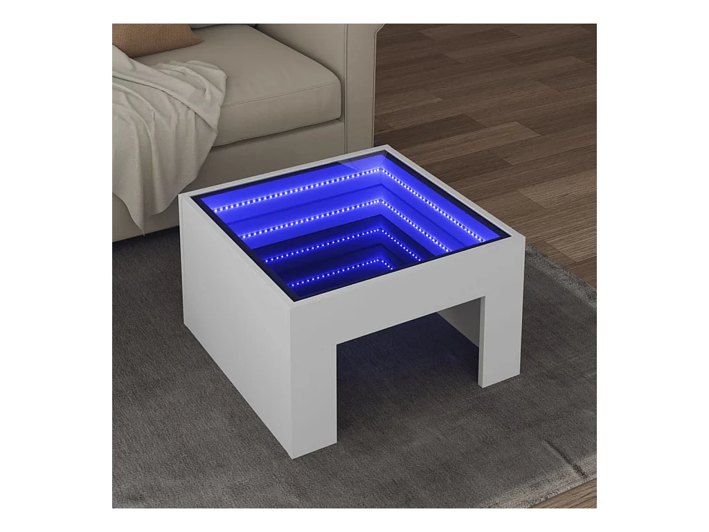Table basse avec LED blanc 50x50x45 cm bois d'ingénierie