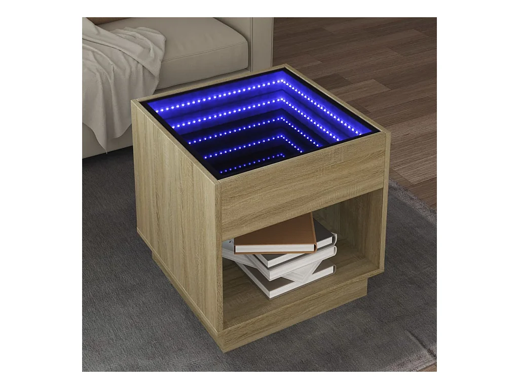 Table basse avec LED infini chêne sonoma 50x50x50 cm
