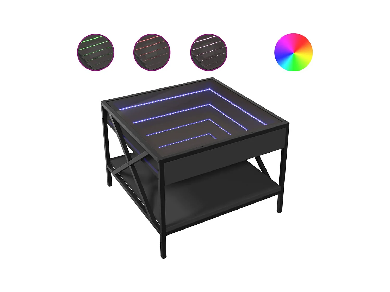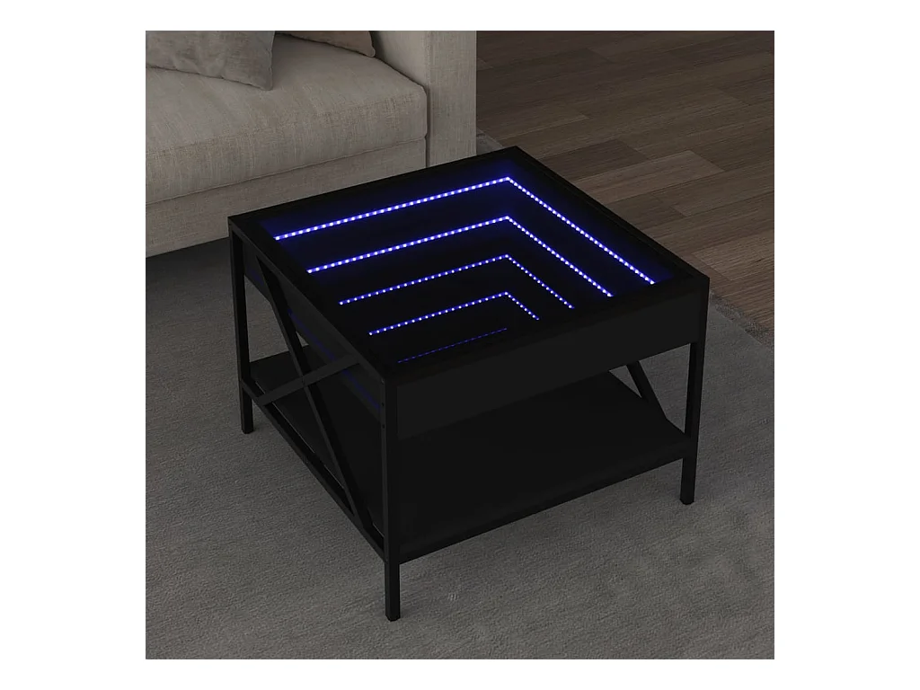 Table basse avec LED noir 50x50x45 cm bois d'ingénierie