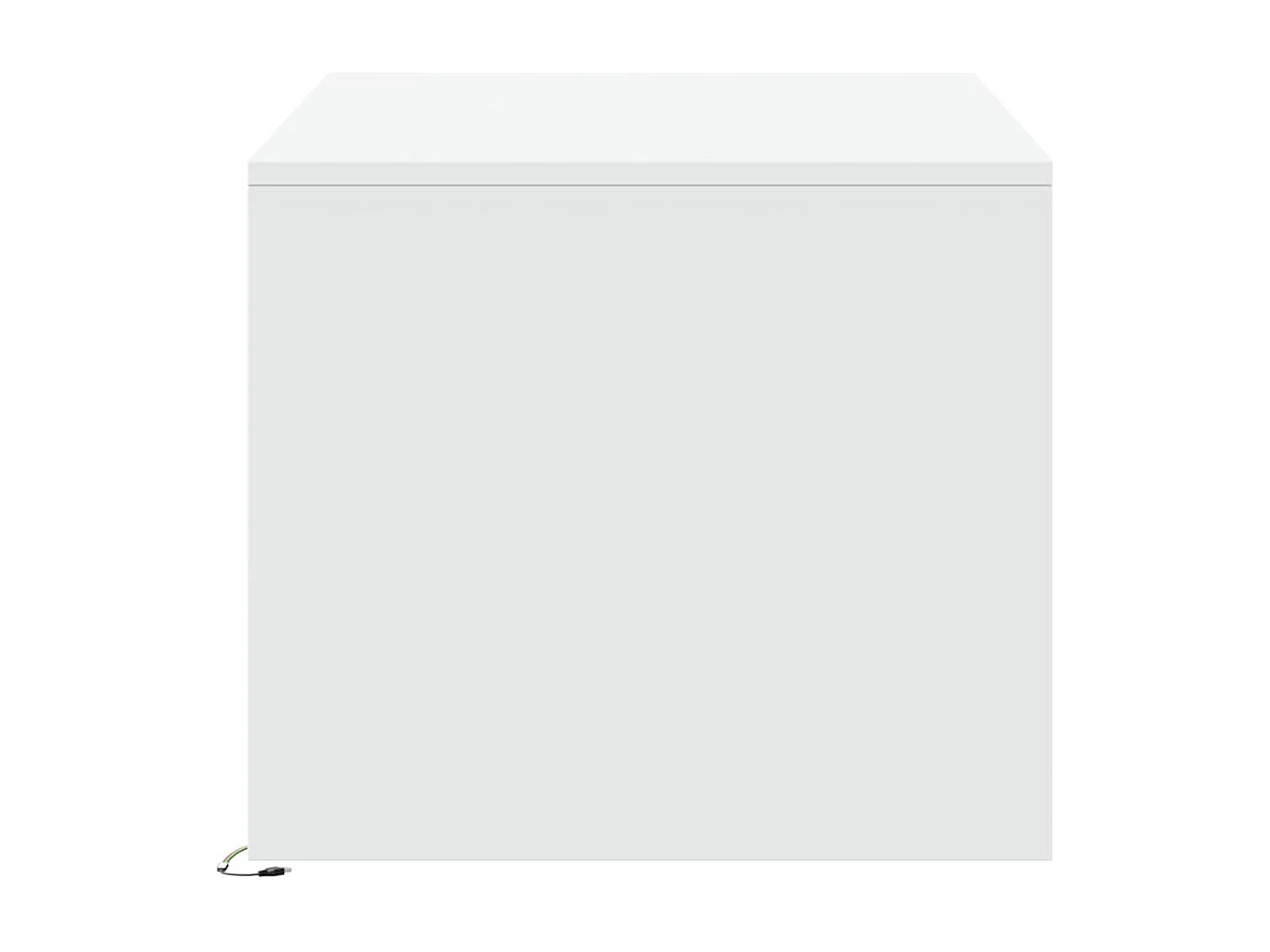 Table basse moderne blanche laquée avec éclairage LED et rangement caché, panneau de particules, (100x50x35 cm)