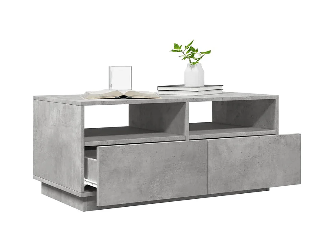 Table basse avec lumières LED gris béton 90x49x40 cm FR38800