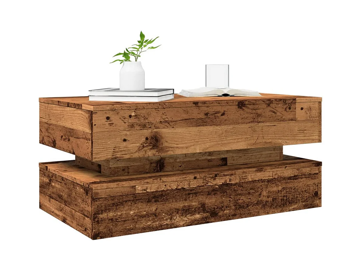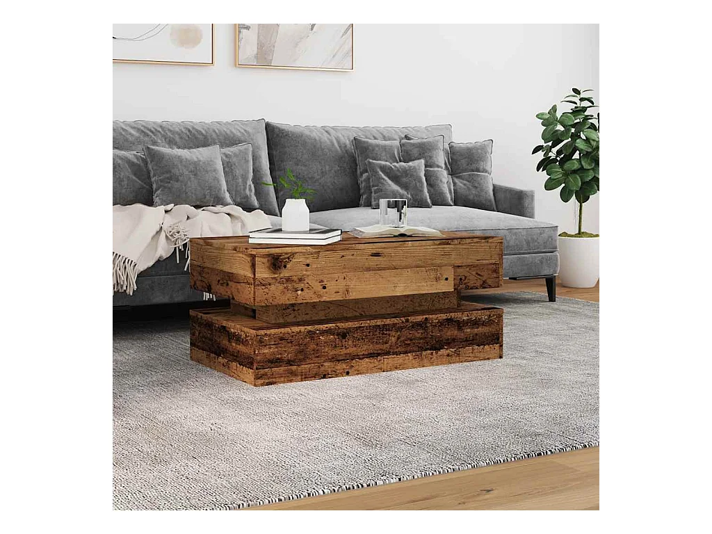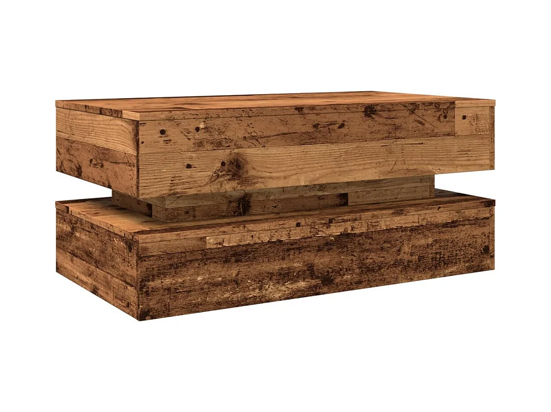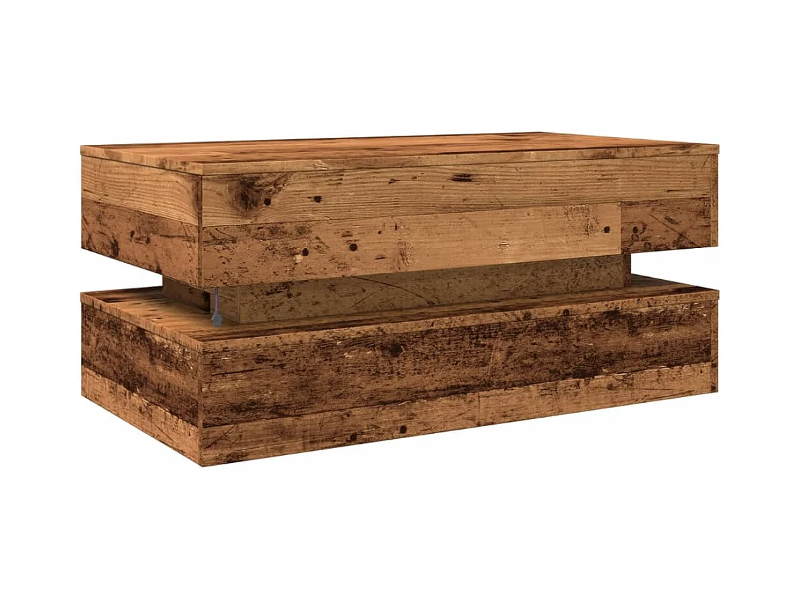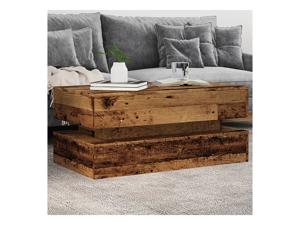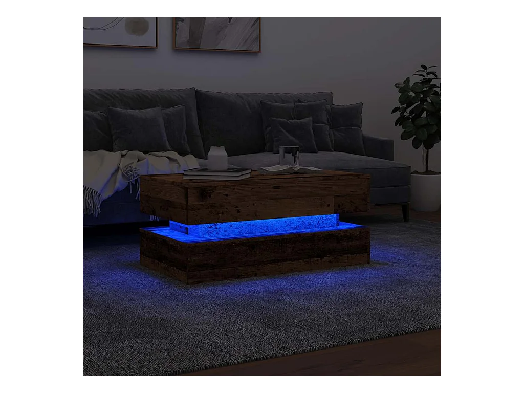 Table basse avec lumières LED vieux bois 90x50x40 cm