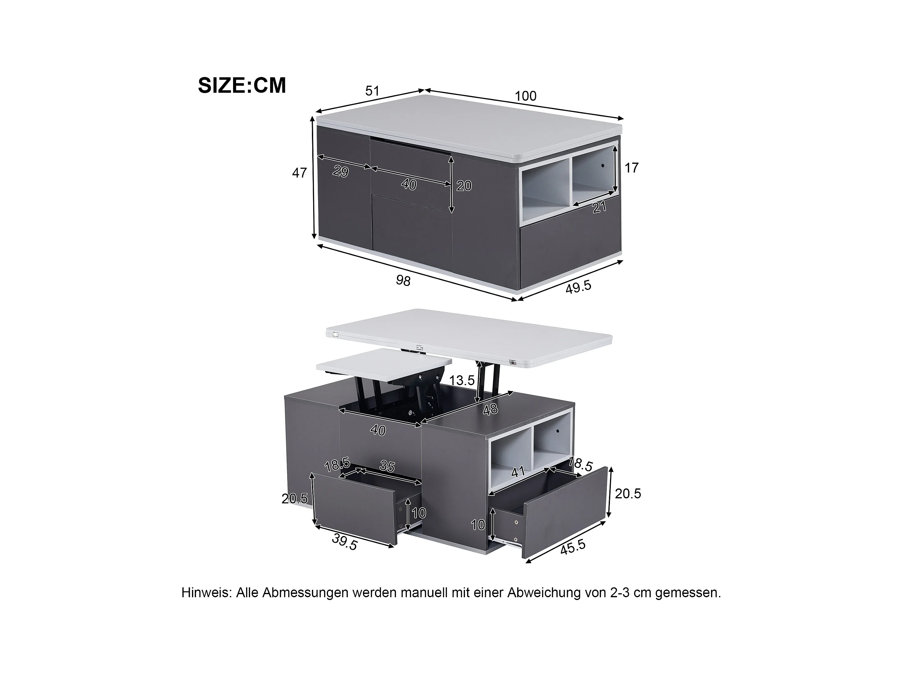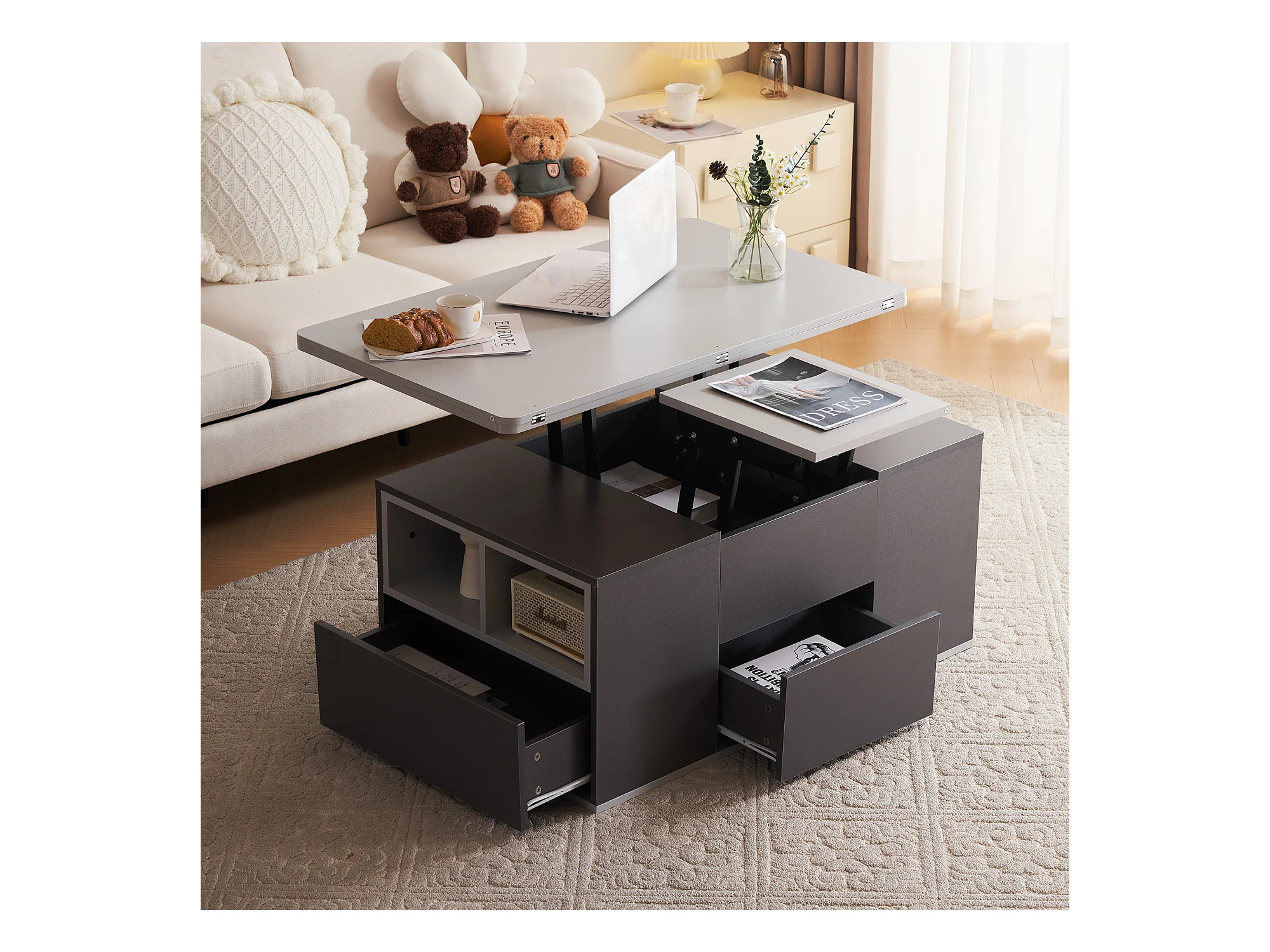 Table basse avec plateau relevable en Panneau de particule et Rangement spacieux - gris