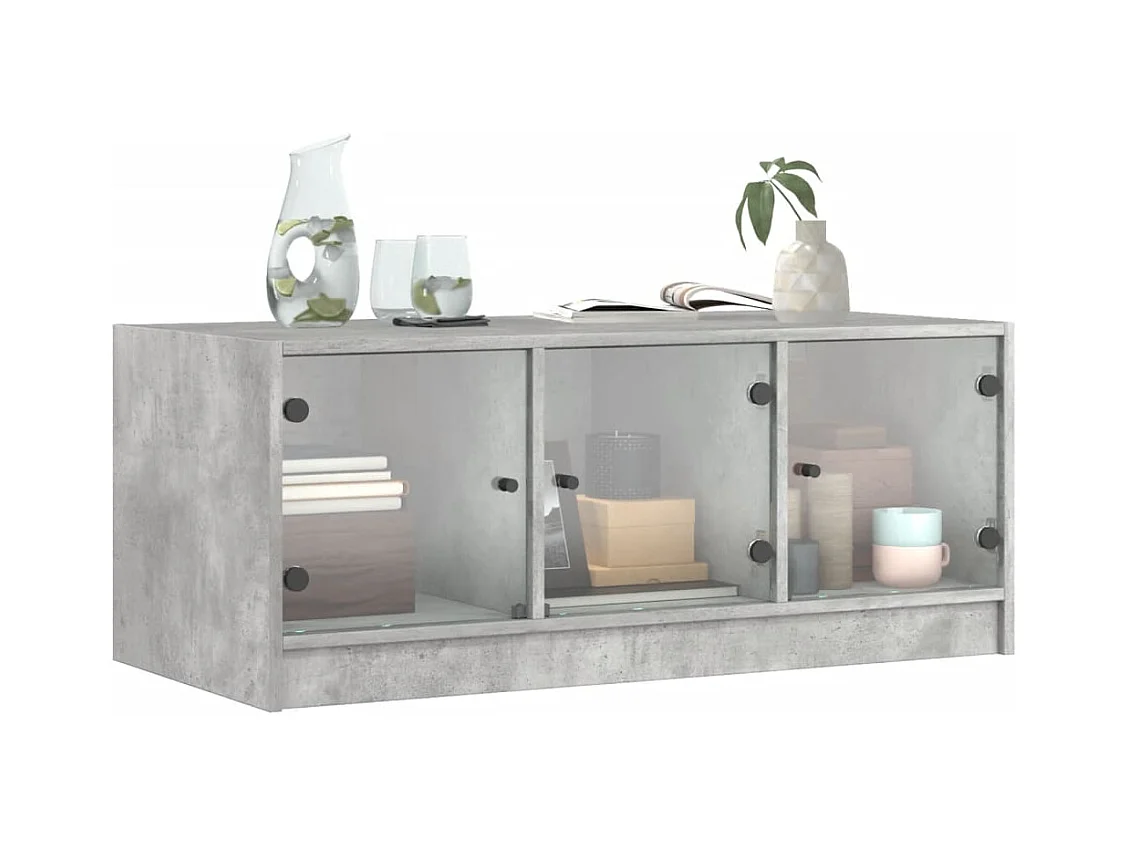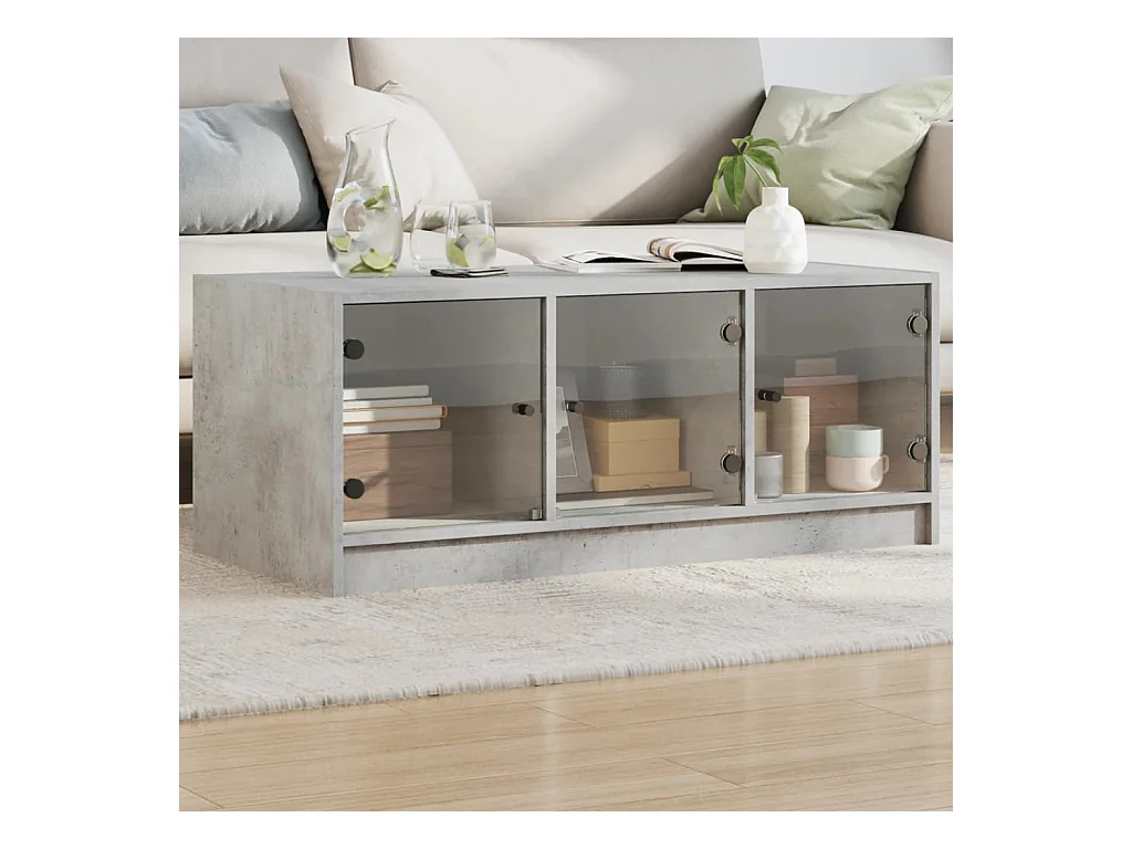 Table basse avec portes en verre gris béton 68x50x42 cm