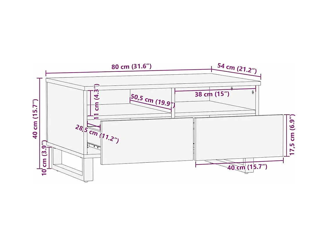 Table basse avec tiroir Beige et Noir 80 x 54 x 40 cm