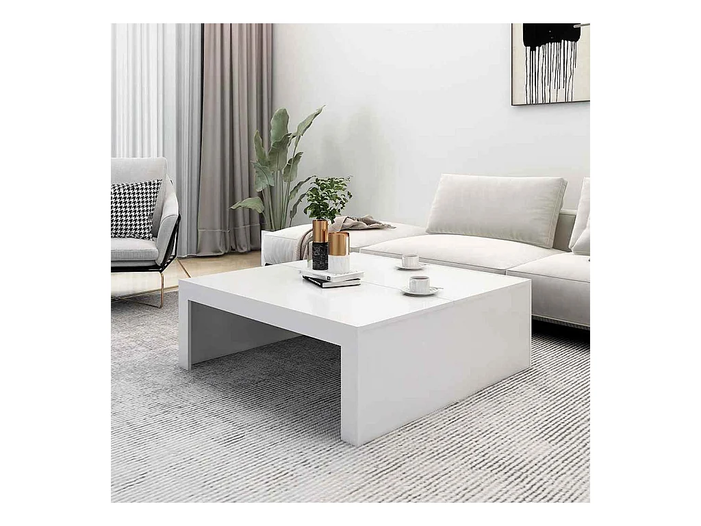 Table basse blanc 100x100x35 cm bois d'ingénierie