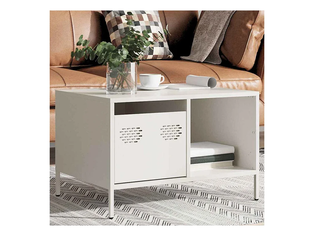 Table basse blanc 68,5x50x43,5 cm acier laminé à froid