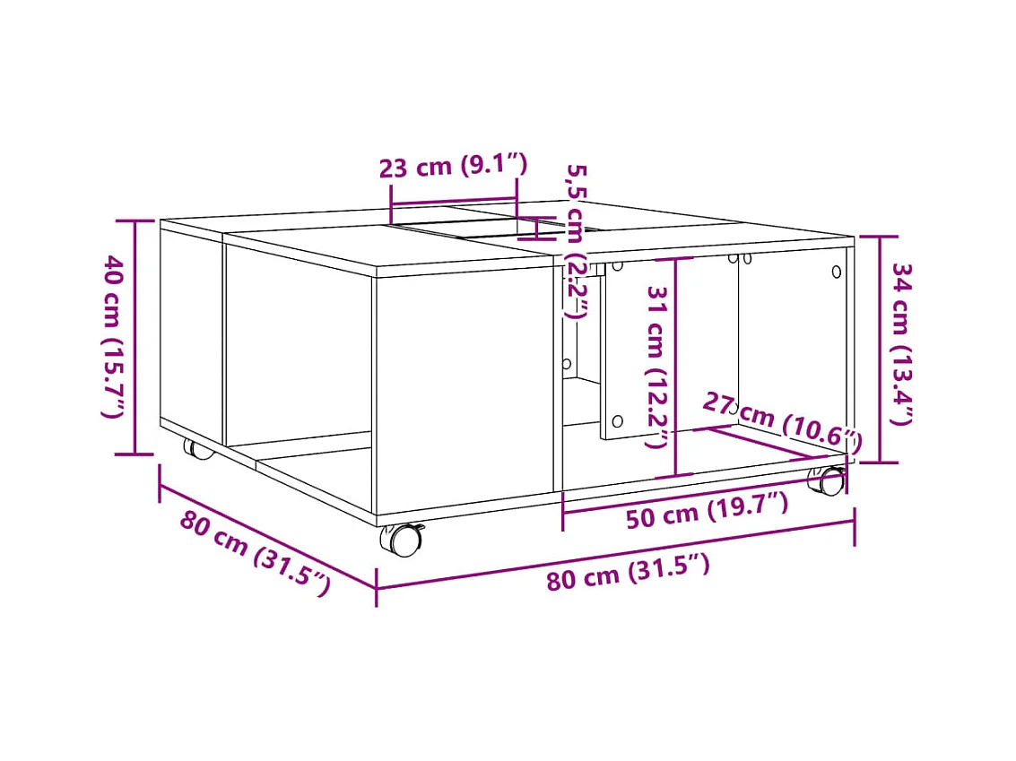Table basse blanc et chêne sonoma 80x80x31 cm bois d'ingénierie