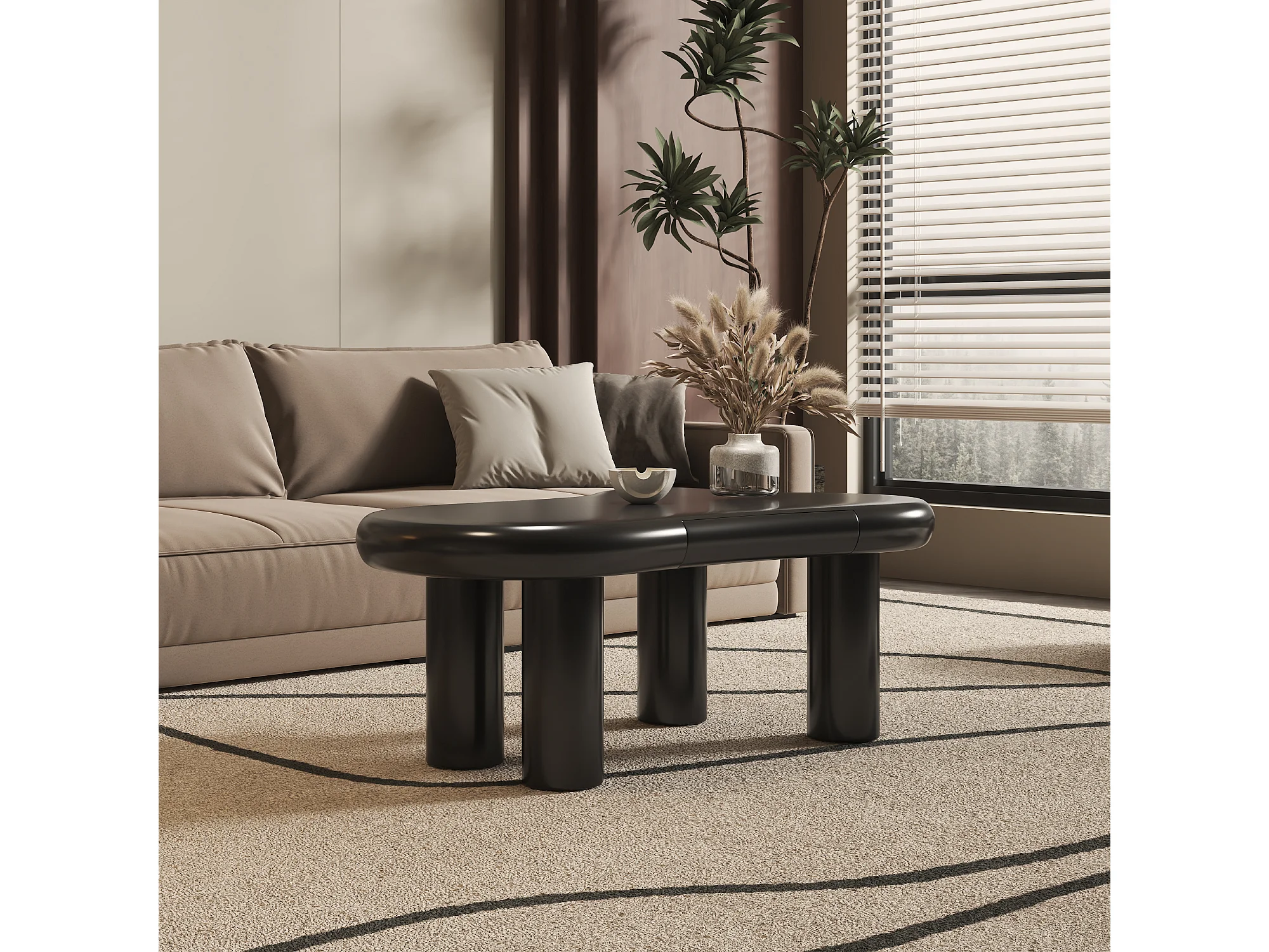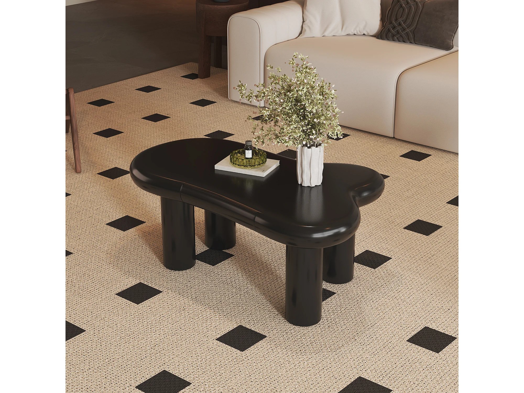 Table basse blanche en forme de nuage en MDF avec LED 16 couleurs & tiroir – design moderne avec rangement
