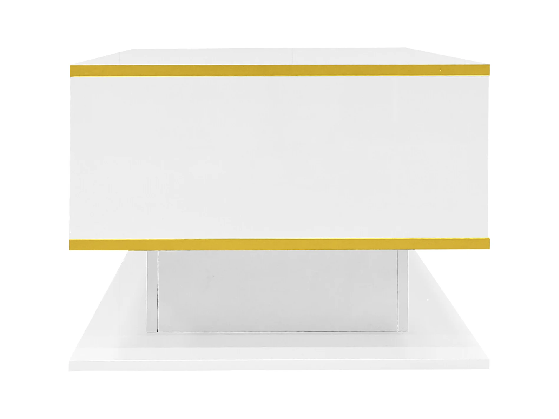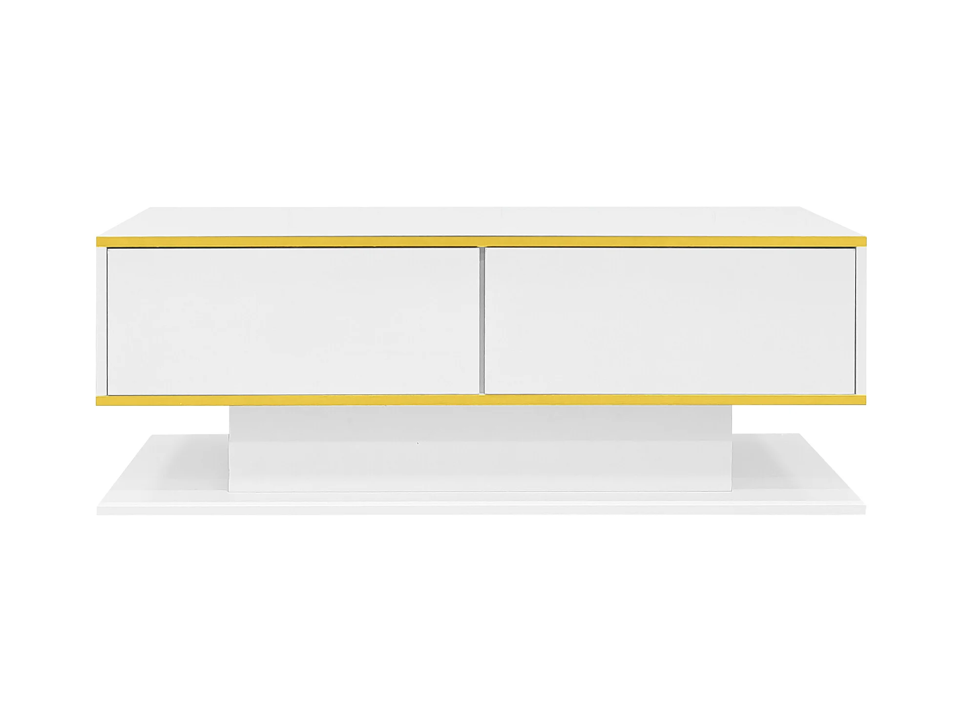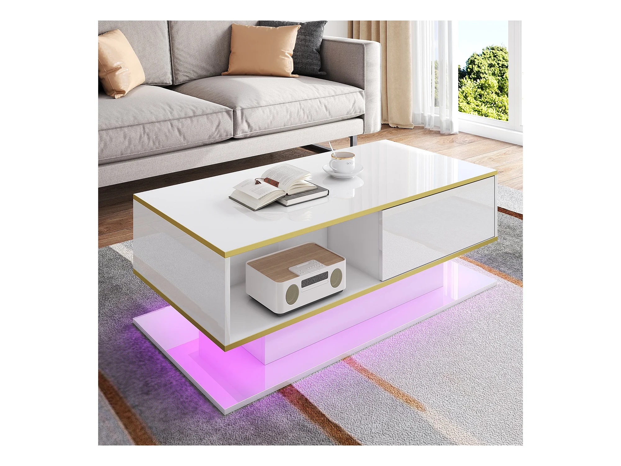Table basse blanche - Table basse avec 3 tiroirs et lumières LED - rangement ouvert - pour salon